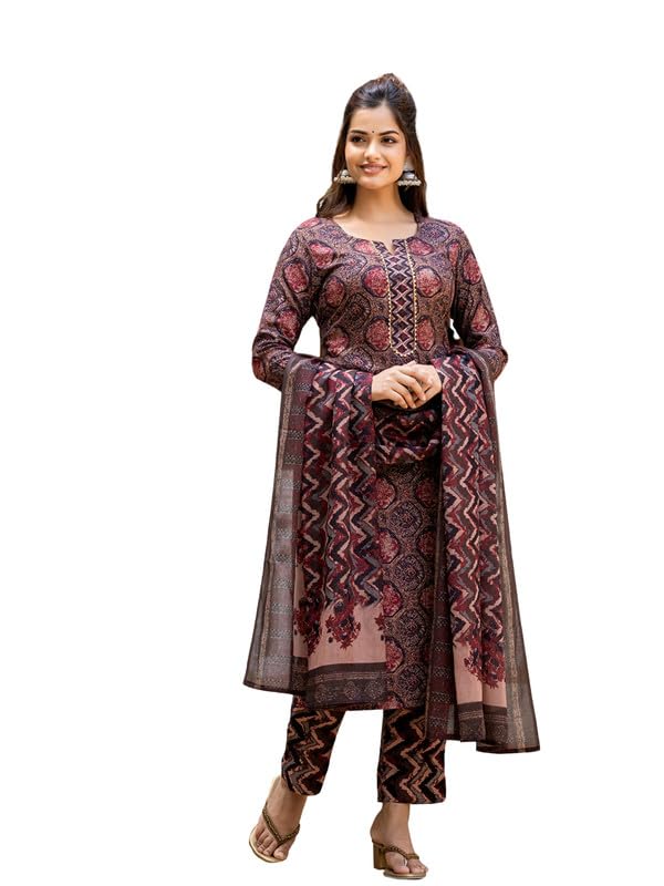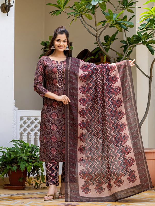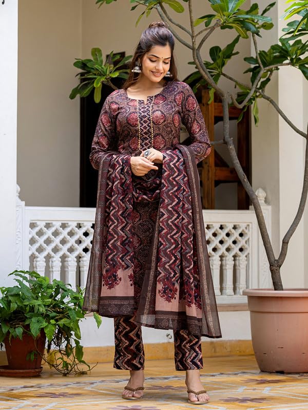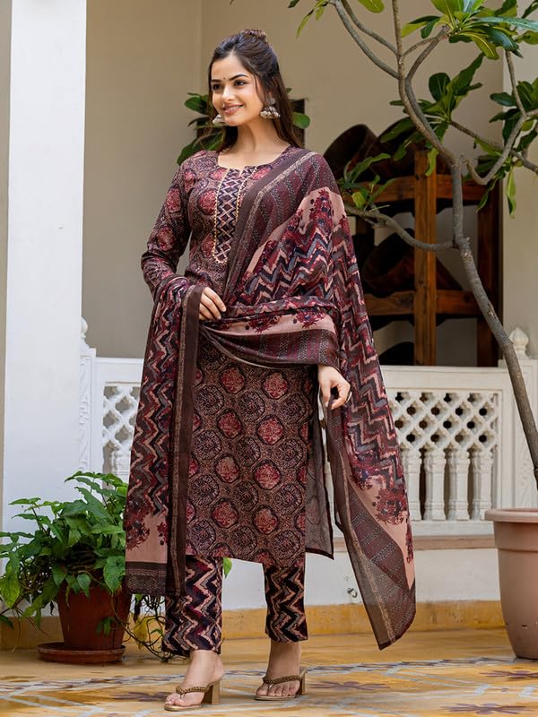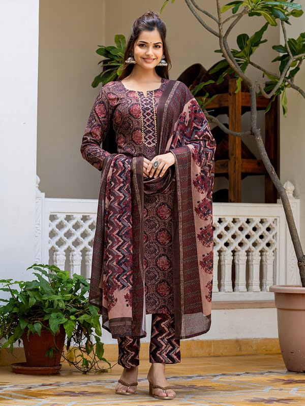 Vaamsi Women’s Rayon Blend Floral Straight Printed Kurta Pant With Dupatta Set | Kurta Sets For Woman