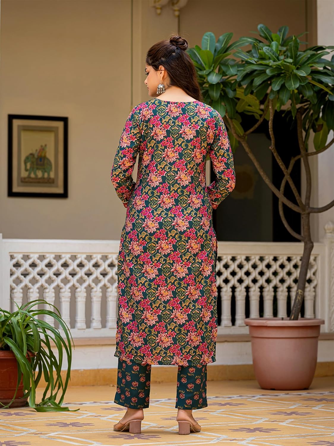 Vaamsi Women’s Rayon Blend Floral Straight Printed Kurta Pant With Dupatta Set | Kurta Sets For Woman