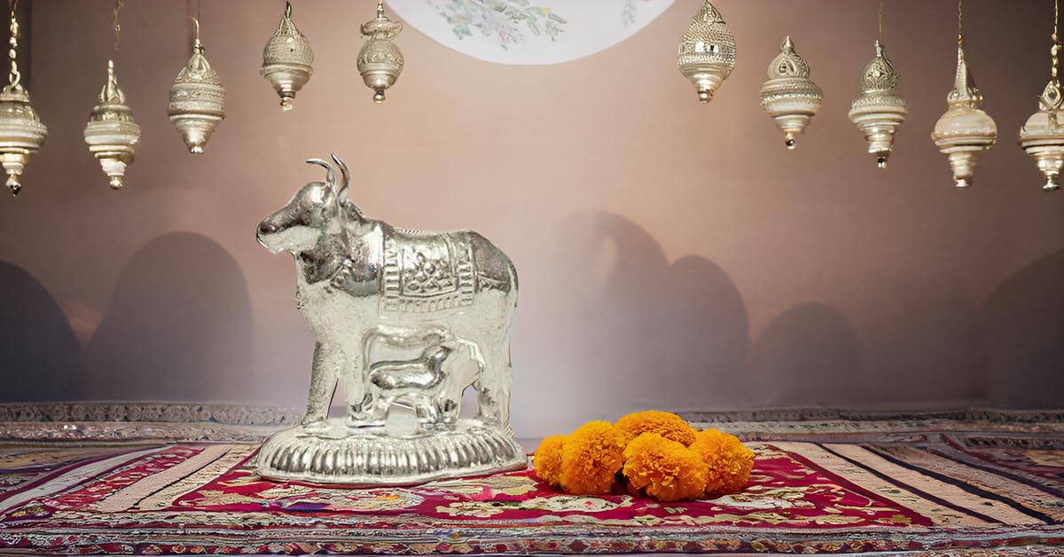 Features of Silver-Plated Kamdhenu Cow & Calf Idol for Home & Spiritual Decor