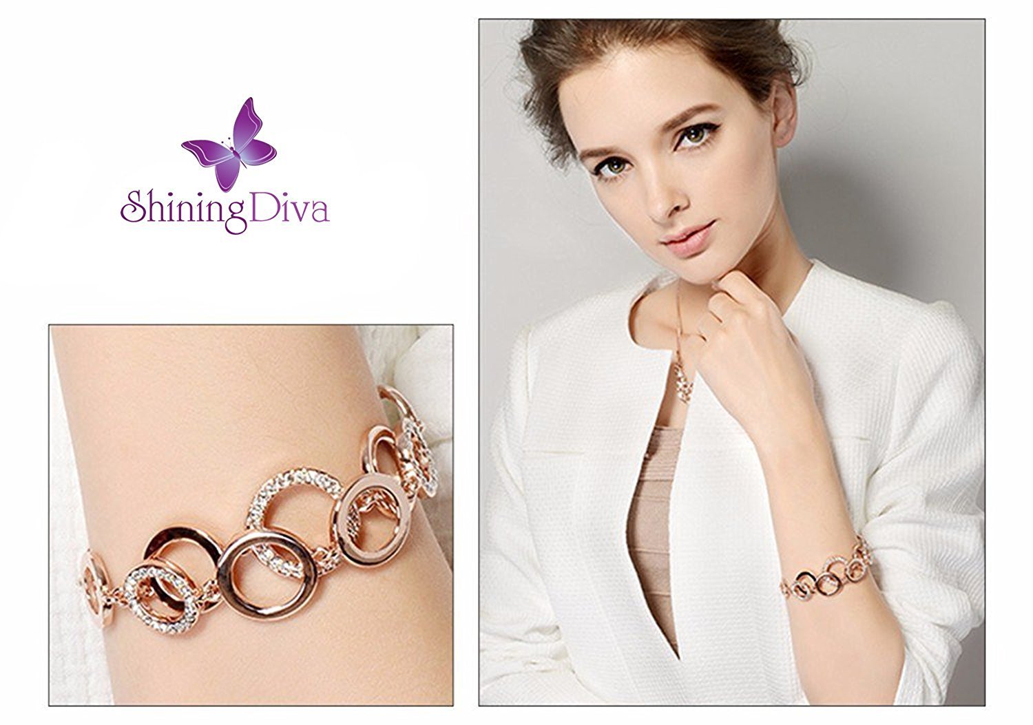 Gifts for girls: shining diva presents this stylish 18k rose gold plated crystal bracelets for girls/ bangles for women. perfect bracelets for girls for party wear or daily wear. ideal jewellery gift for yourself or your loved ones. shining diva is a well known brand across fashion jewellery sector. shining diva products are stylish and funky and are available at most affordable prices. this gold plated jewellery is studded with crystals stones. shining diva fashion and traditional jewelry give true value for your money. buy shining diva trendy, fancy party wear artificial and semi precious jewellery from amazon in cheap low price offer. these are also ideal for birthday gifts for girls, wedding gifts and anniversary gifts.