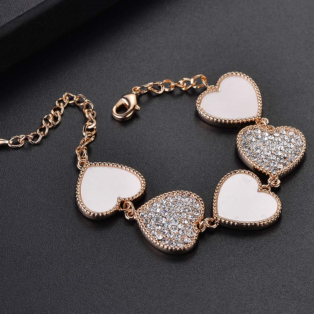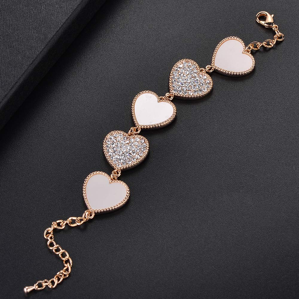 Valentine Gift By Shining Diva Crystal Heart Bracelet for Women and Girls (Rose Gold) (vg9987b)
