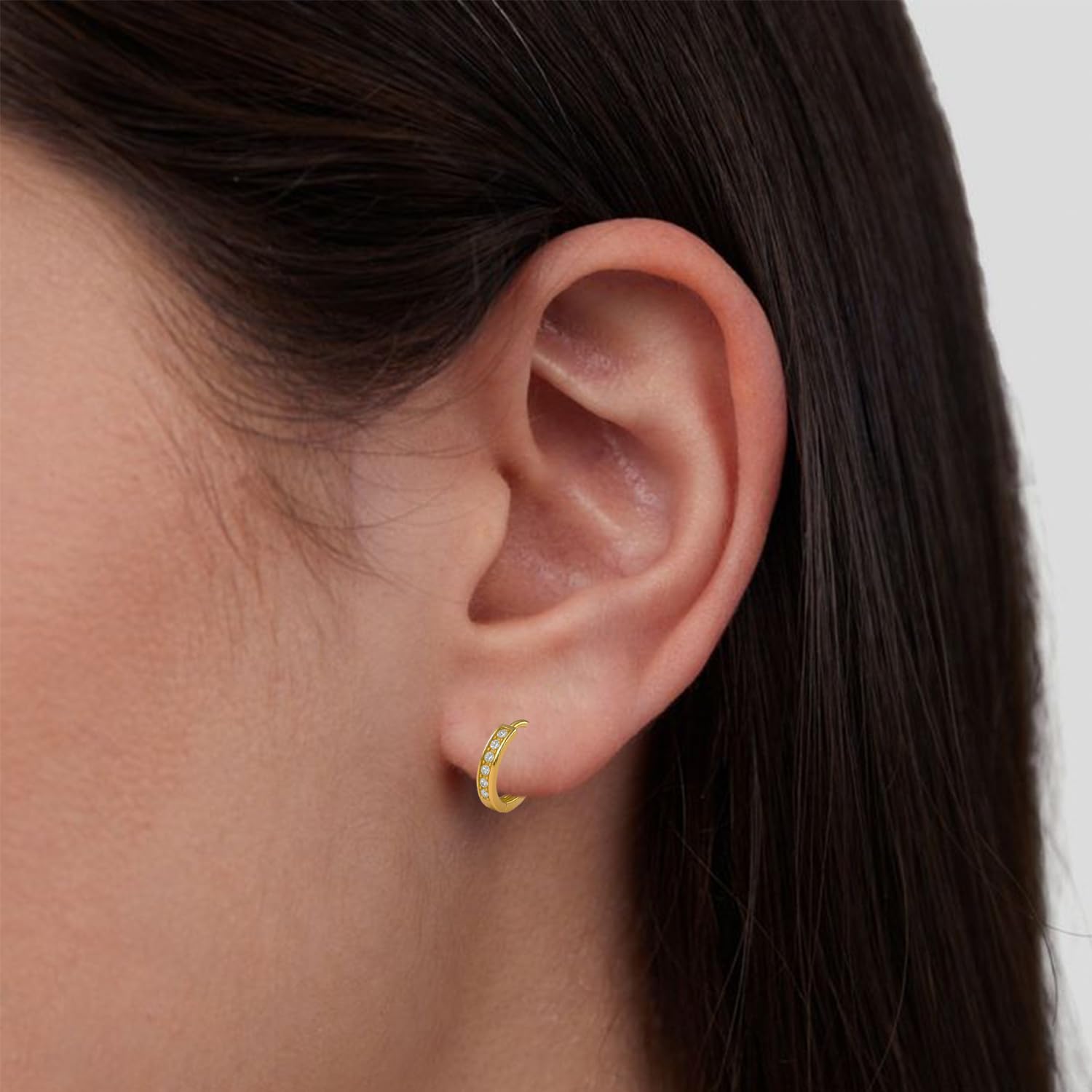 ✓The earrings feature carefully set Cubic Zirconia (CZ) stones, offering the same brilliant sparkle as diamonds. The CZ stones add a sophisticated touch to the huggie hoops, making them perfect for those who love to make a statement with their accessories.