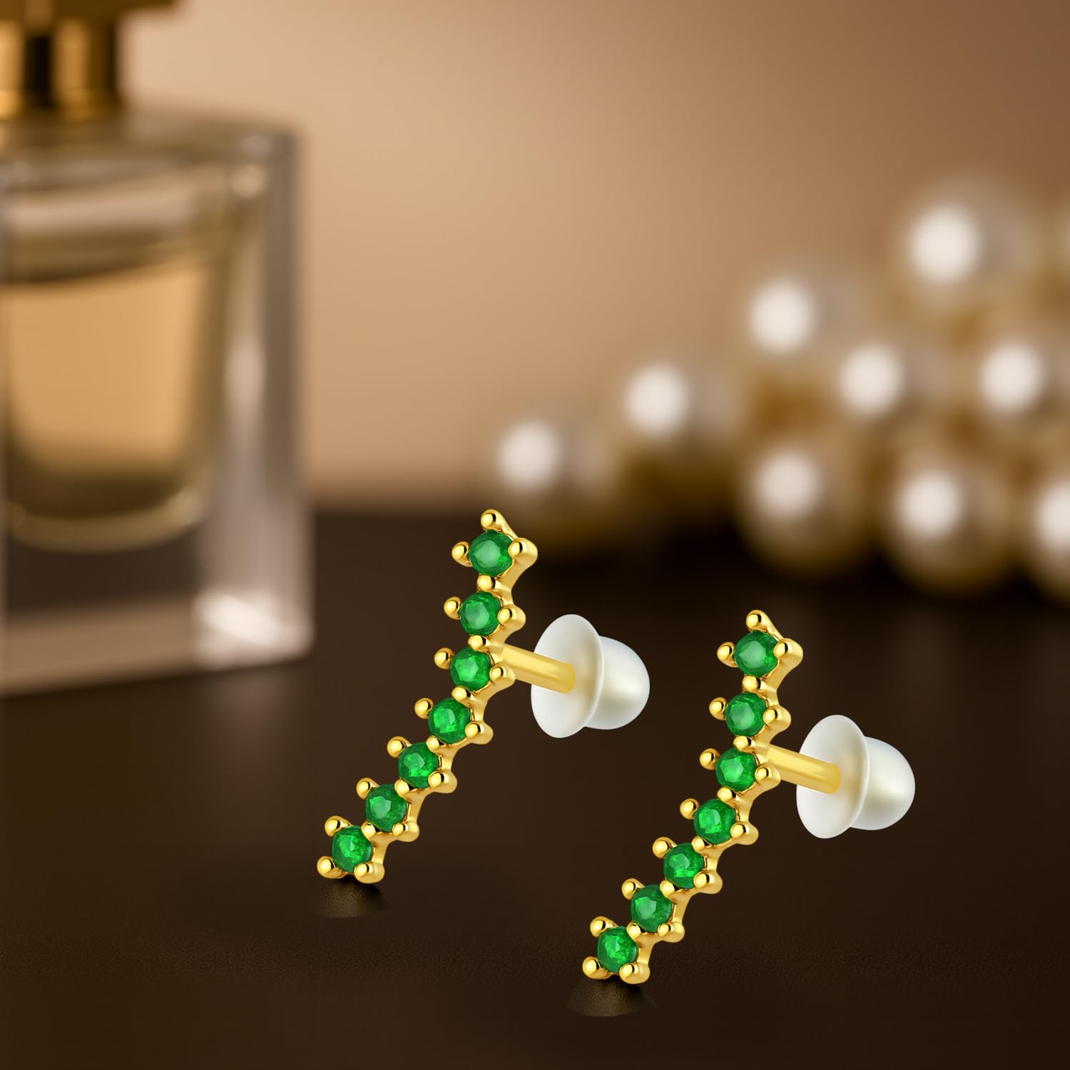 VAMA FASHIONS 18K Plated Climber Earrings CZ 7 Stones Anti Tarnish Lightweight Ear Cuff Stud Jewelry for Women & Girls