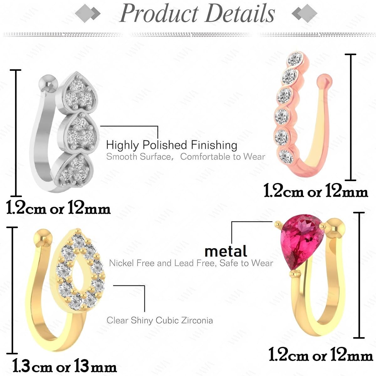 VAMA FASHIONS Gold Silver Rose Gold Non Piercing Clip On Nose Pins Without Hole Pressing Type Nose Ring Studs for Women & Girls
