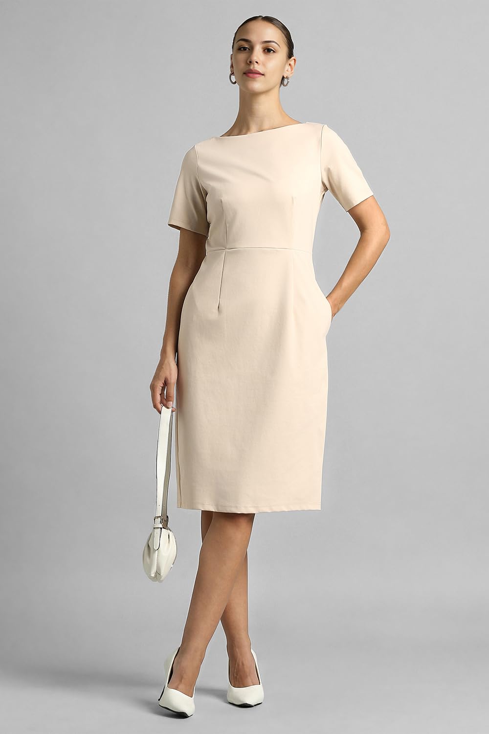 Van Heusen Women’s Cotton Blend Boat Neck Mid-Length Sheath Comfort Fit Above The Knee Dress
