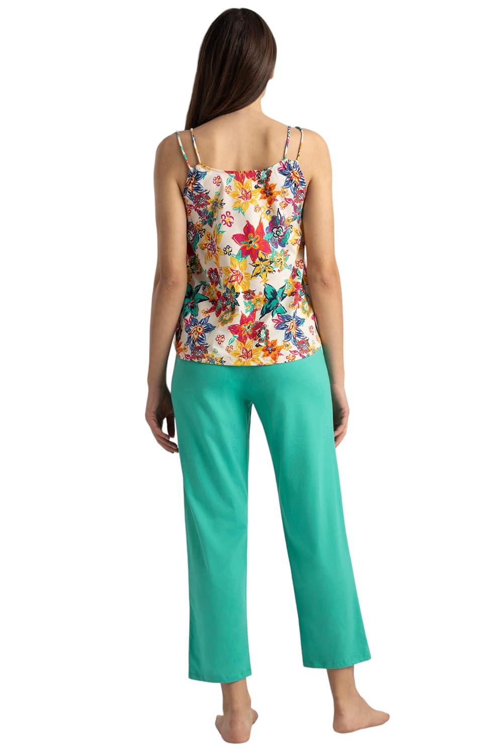 This no-fuss set is sure to take you from sleep to lounging with ease. Look lovely in this 100% cotton cami top and pants set. This bundle comes with a printed sleeveless top and ankle-length bottoms.