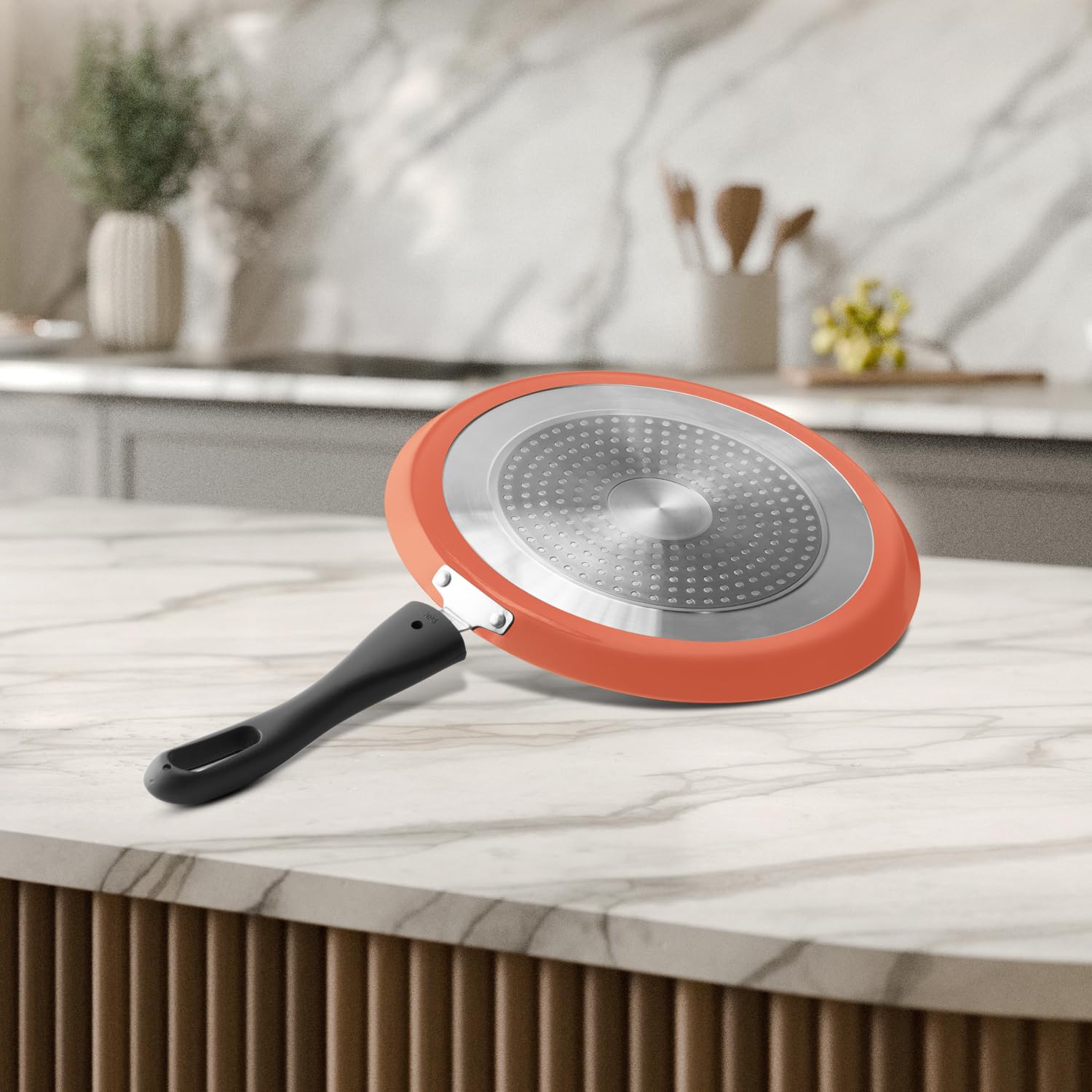 VAYA Hautechef Non-Stick Dosa Tawa 28cm, 3-Layer ILAG Swiss Coating, PFOA-Free, Induction Friendly, with Soft-Touch Grey Handle, Color – Coral Crush