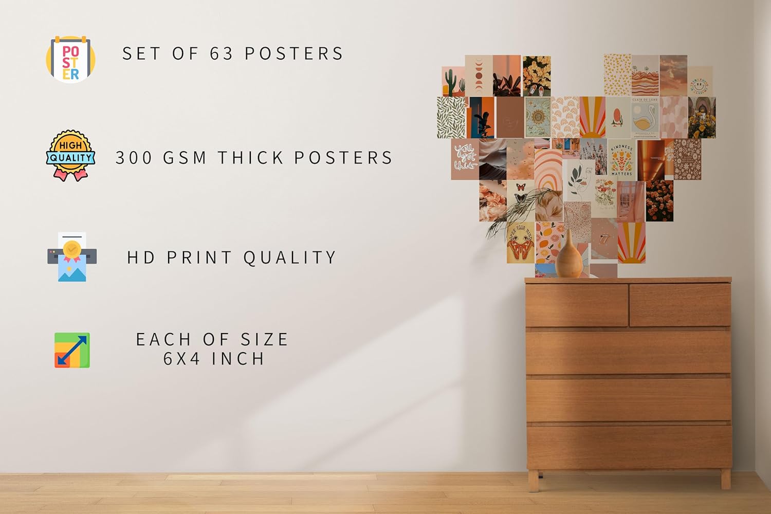[Compact Size]: Each poster measures 6×4 inches, perfect for creating a stylish and customizable gallery wall.