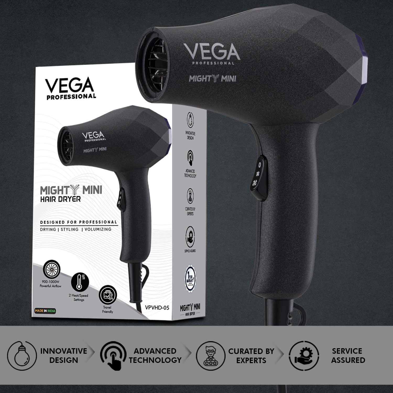 1 Year Warranty: VEGA PROFESSIONAL offers 1 year warranty on its professional hair dryers. You can check more details in the manual provided with the box.