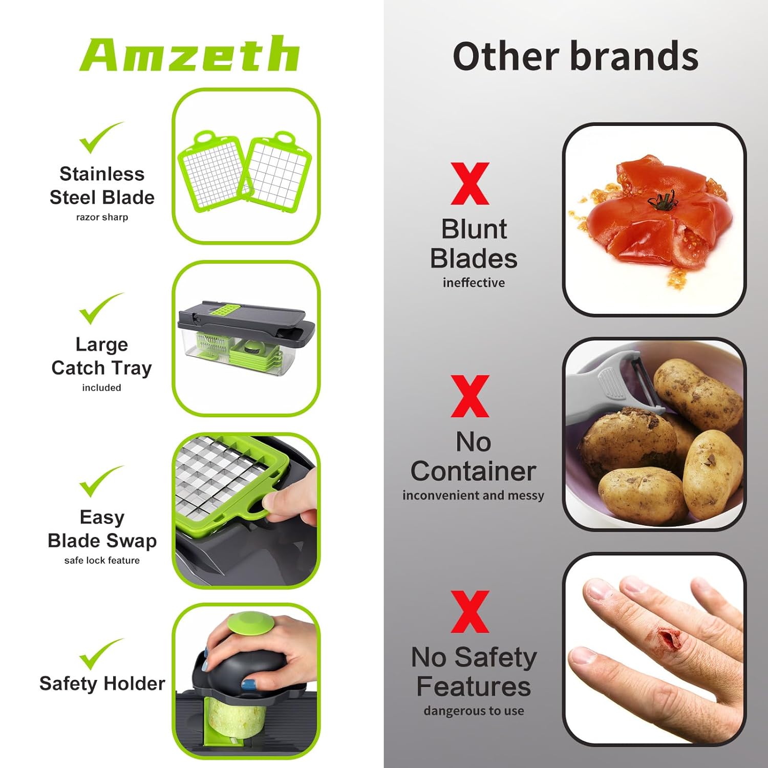 🥗【REAL TIME CUSTOMER SERVICE】– Amzeth vegetable chopper with container comes with lifetime warranty service, if you don’t like this food chopper/slicer, If you have any questions about the onion chopper, please feel free to contact us. Everything we do is to make life easier, better and more enjoyable.