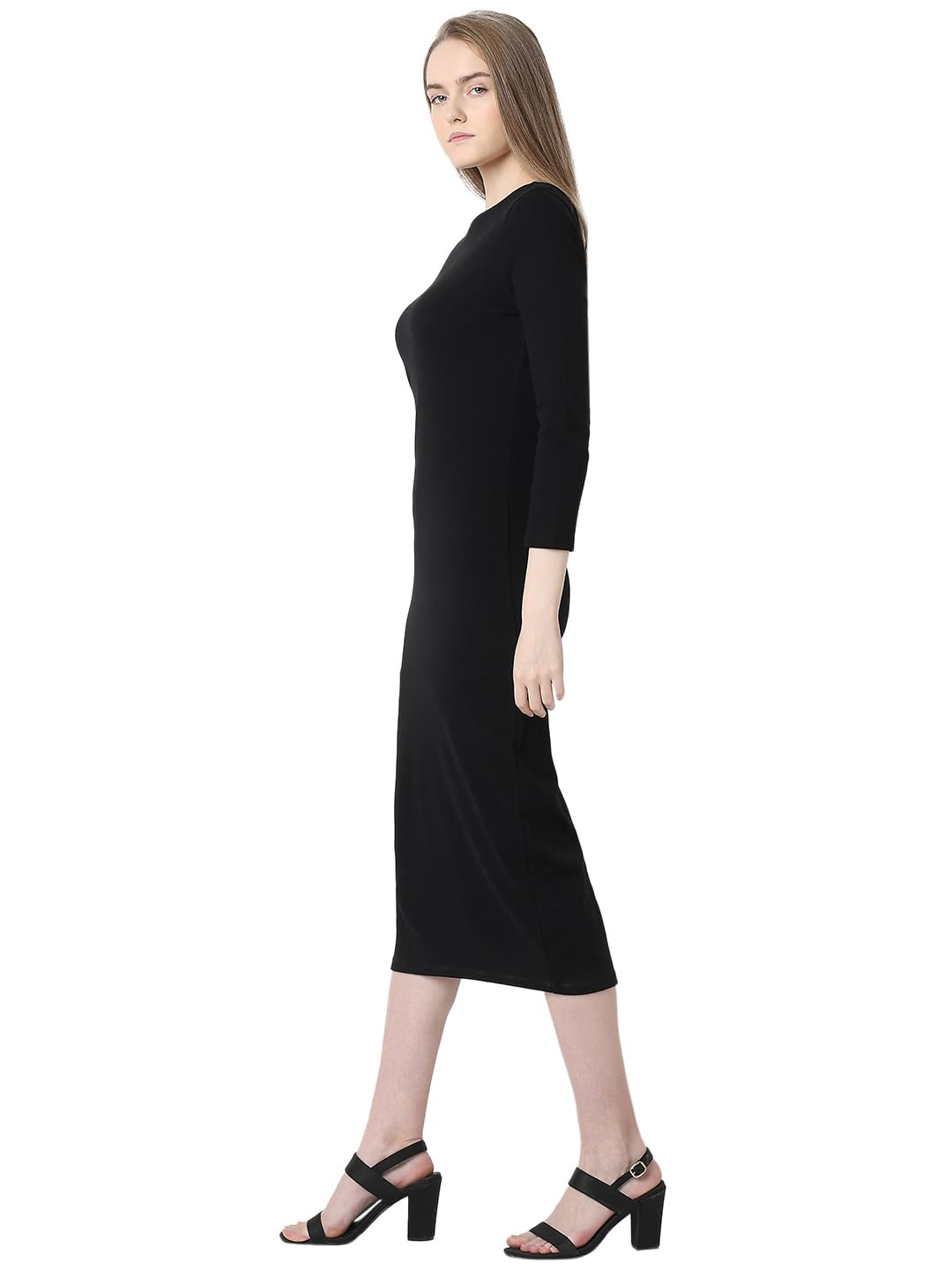 VERO MODA Women Solid Boat Neck Sheath Midi Dress | Bodycon Full Sleeves