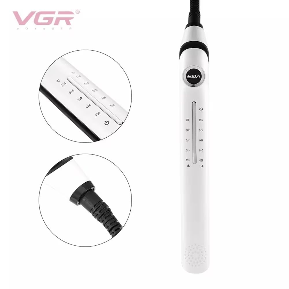 VGR V-566 Professional Hair Straightener with Ceramic coated plate & Uniform heat technology Straightens All Hair Types 150°C to 230°C 5 Adjustable Temp setting LED Display 360° swivel cord – White