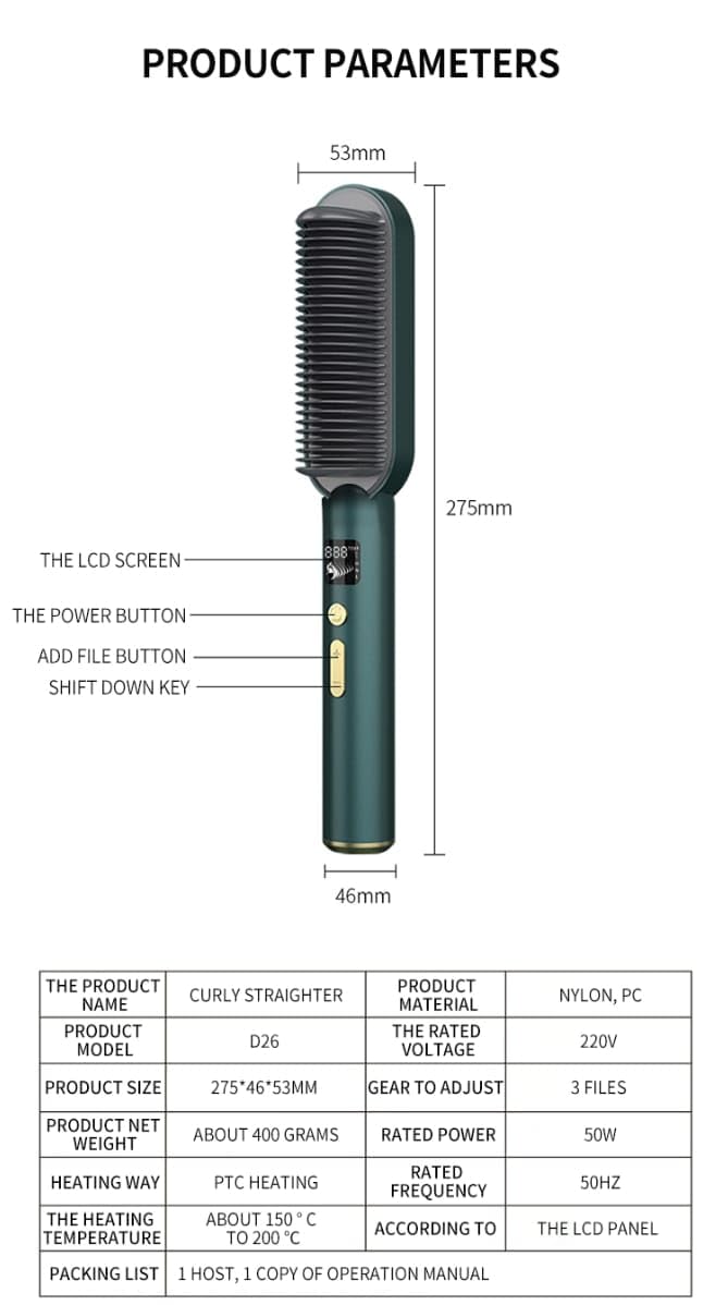 HAIR STRAIGHTENER COMB [International Standard Voltage] Our hair straightener is suitable for international voltages from 110V to 220V, which is convenient for travel. With a conversion plug, you can use it no matter which country you are in. Bring a travel bag, you can easily pack it and take it for travel.