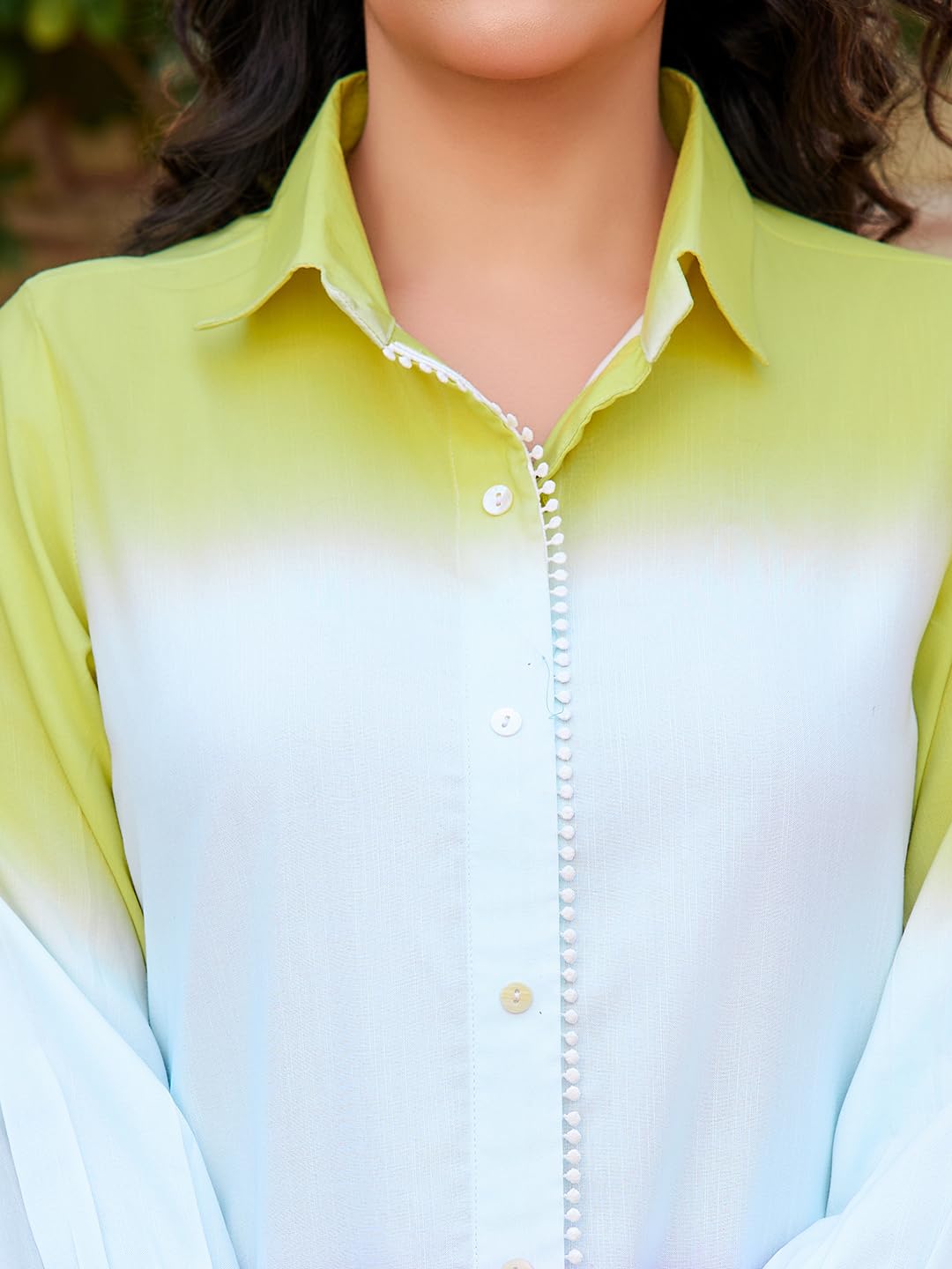 VIBE VISION 2-Piece Women’s Co-ords Set – Silk Blend Shirt Collar 3/4 Sleeve Regular Fit Casual Shirt & Trousers Printed Design