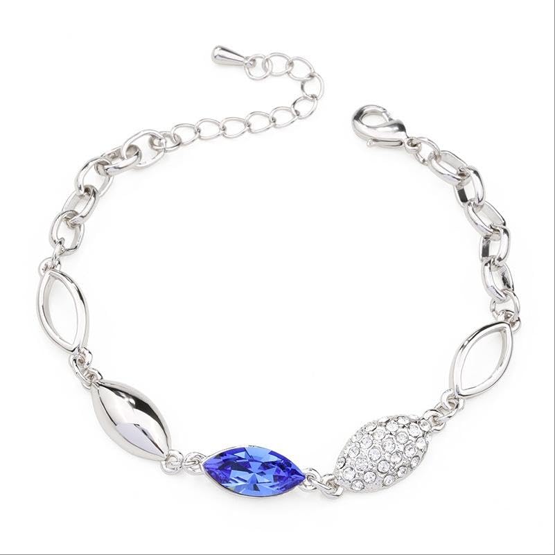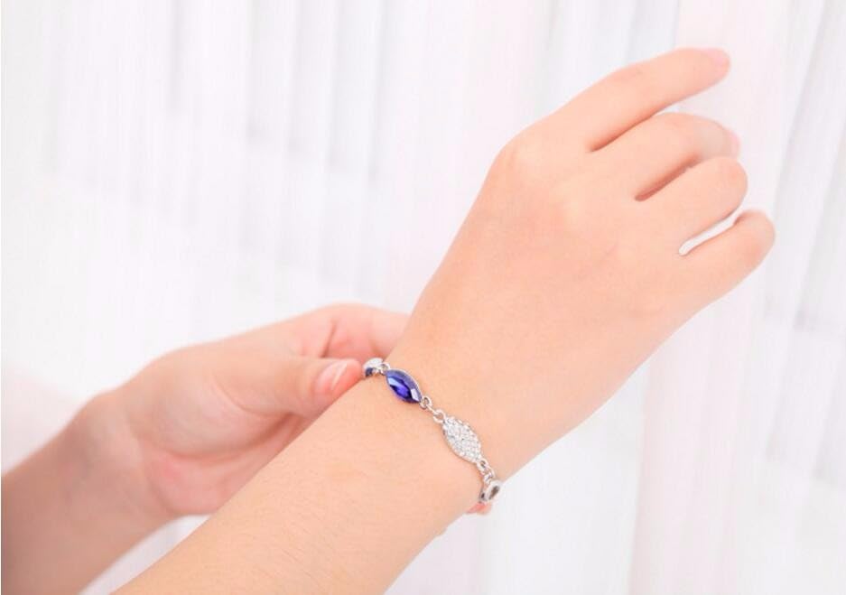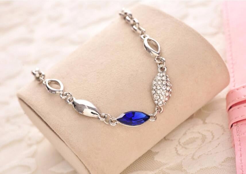 Vientiq Silver-Plated Zig-Zag Royal Blue Crystal Link BraceletFor Womne & Girls
