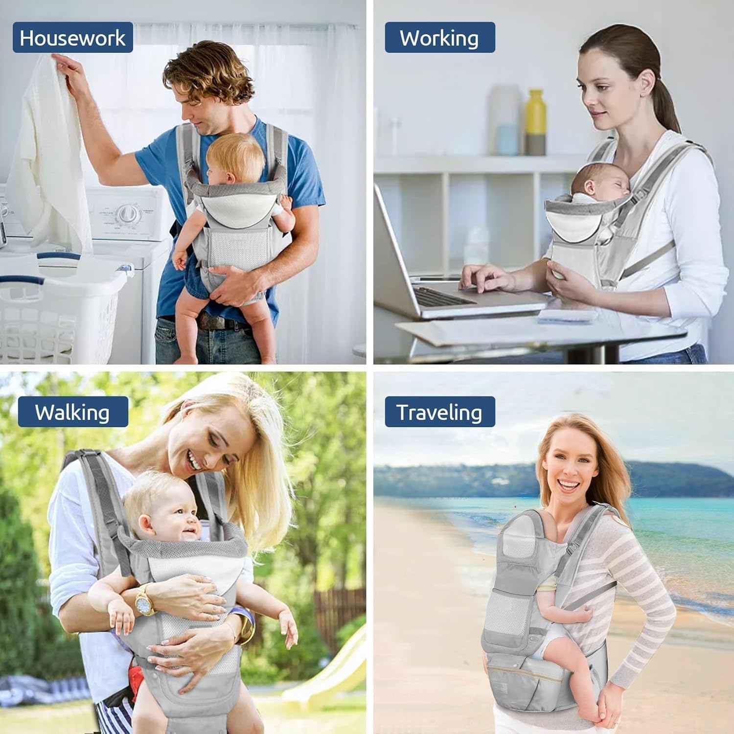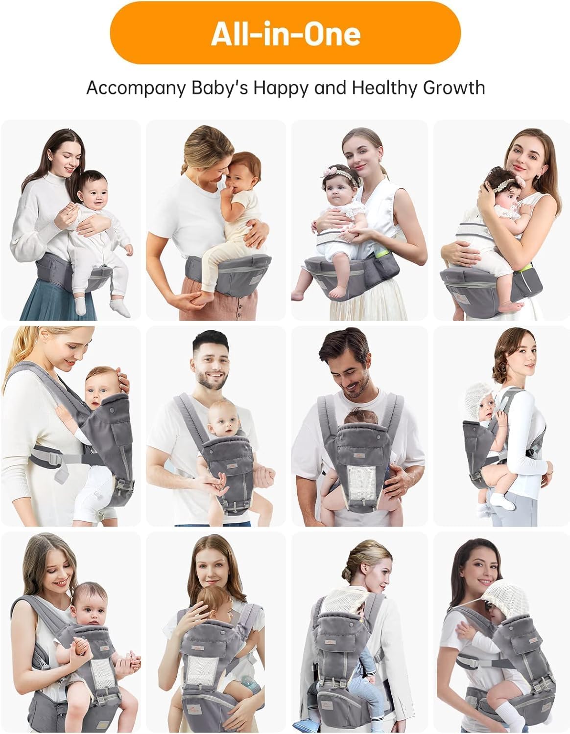 4 carrying position modes: Chest way, kangaroo style, back carry, cross arm carry for feeding. Easy to operate and adjust it, flexible carrying position. Extra padded shoulder straps and a supportive waist belt evenly distributes the weight of the child. Easy to get in and out your lovely baby with this AmazingHind baby carry bag.