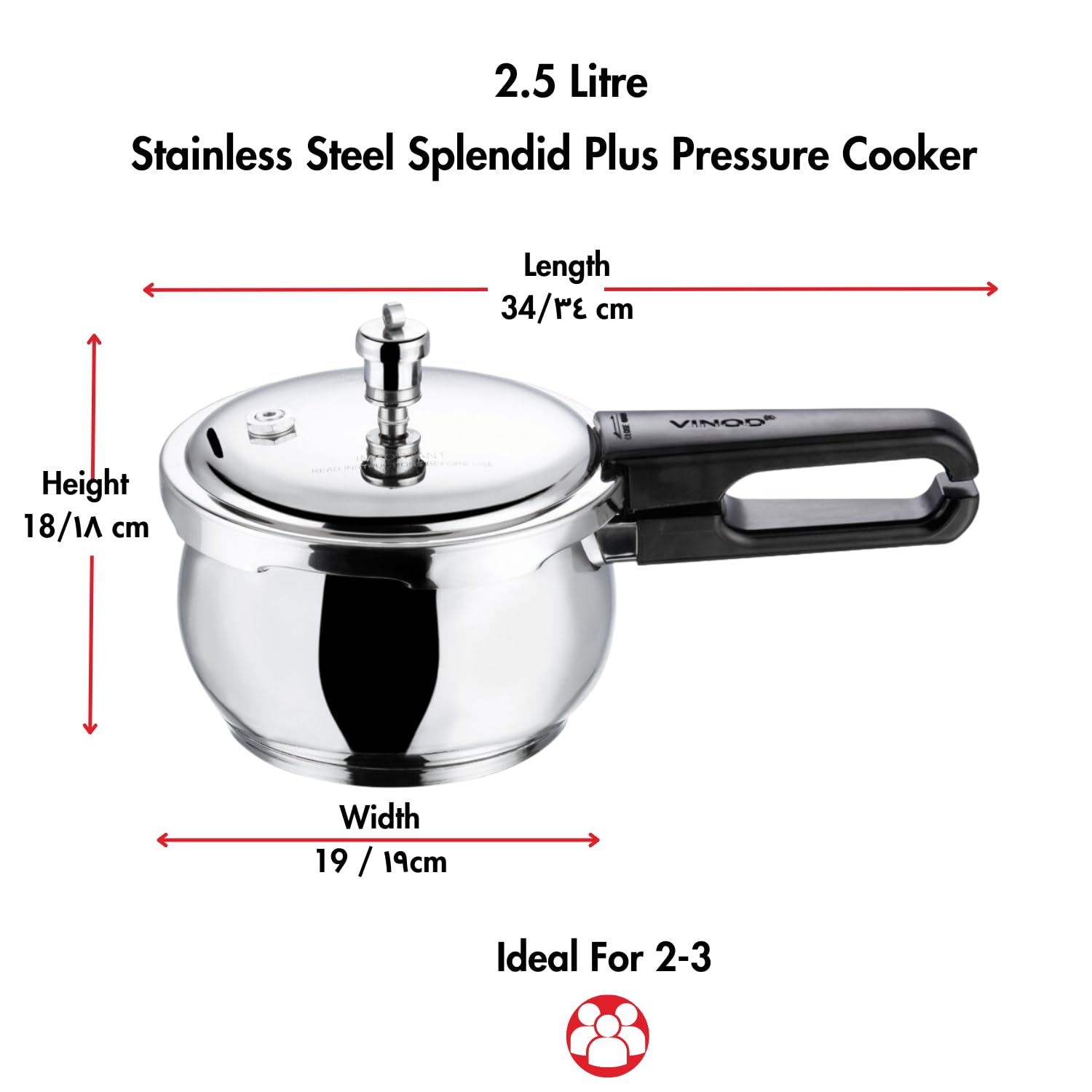 Vinod Splendid Plus Stainless Steel Outer Lid Pressure Cooker – 2.5 Litre Handi Shape | SAS Bottom | Extra Glass Lid | Induction & Gas Stove Compatible | ISI & CE Certified | 2 Year Warranty