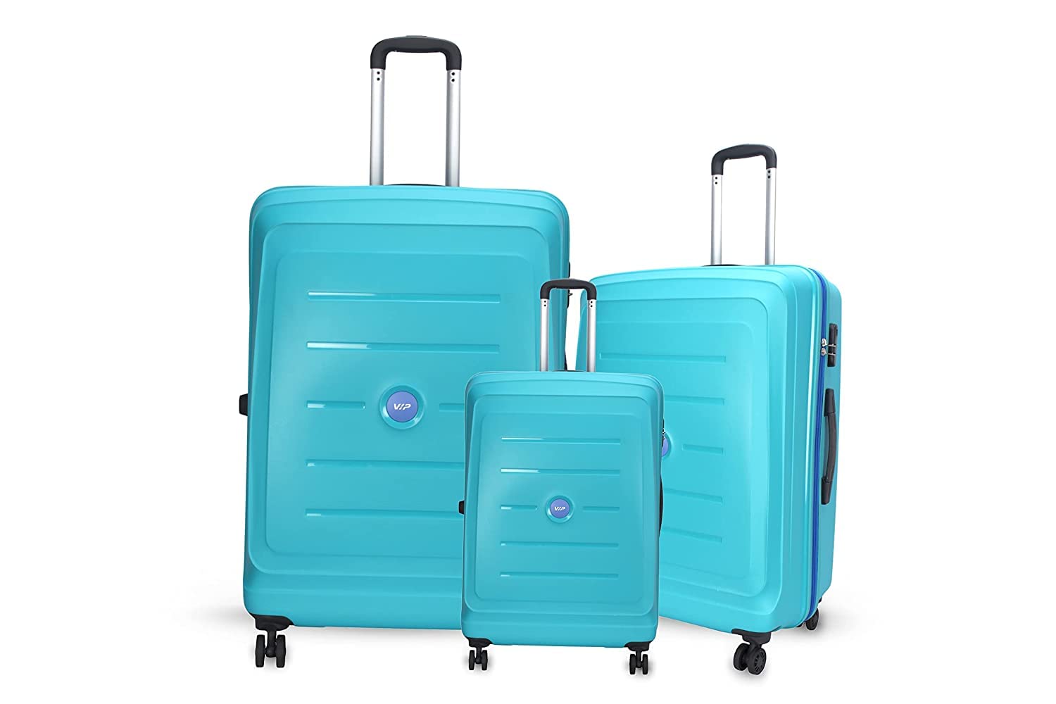 VIP Manama Gold Polycarbonate Luggage Bags With Spinner Wheels (Set Of 3 Pc) Small Medium And Large| Anti-Theft Zipper 8W Hardsided Suitcase With Tsa Lock (Turquoise), 55, 65, 75 Cm