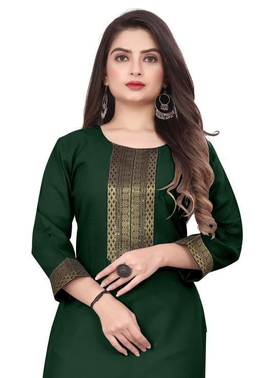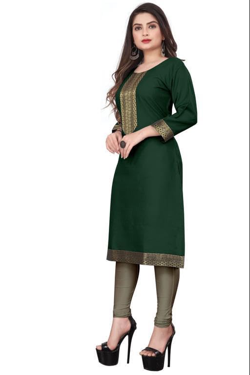 Generic Name : VISVA DESIGNER New Branded Cotton Straight Kurta Kurtas For Girl Dark Green Colour Small Size