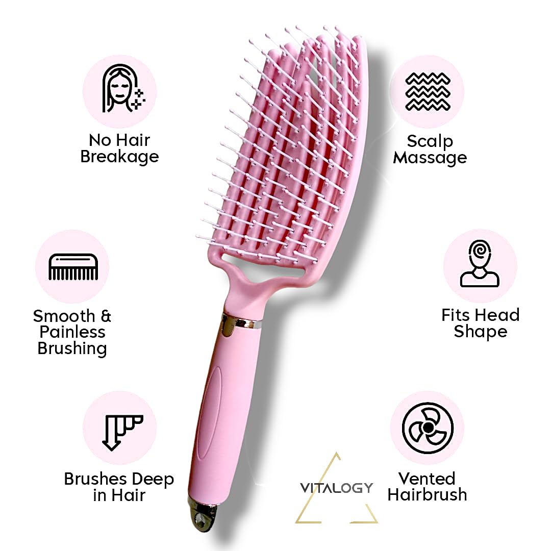 Vitalogy – Hair Brush for Women and Men VENTED – Detangler Hair Brush For All Hair Types (Wet, Dry & Damaged Hair) – Hair Straightener for Curly Hair, Blow Drying (Pink B)