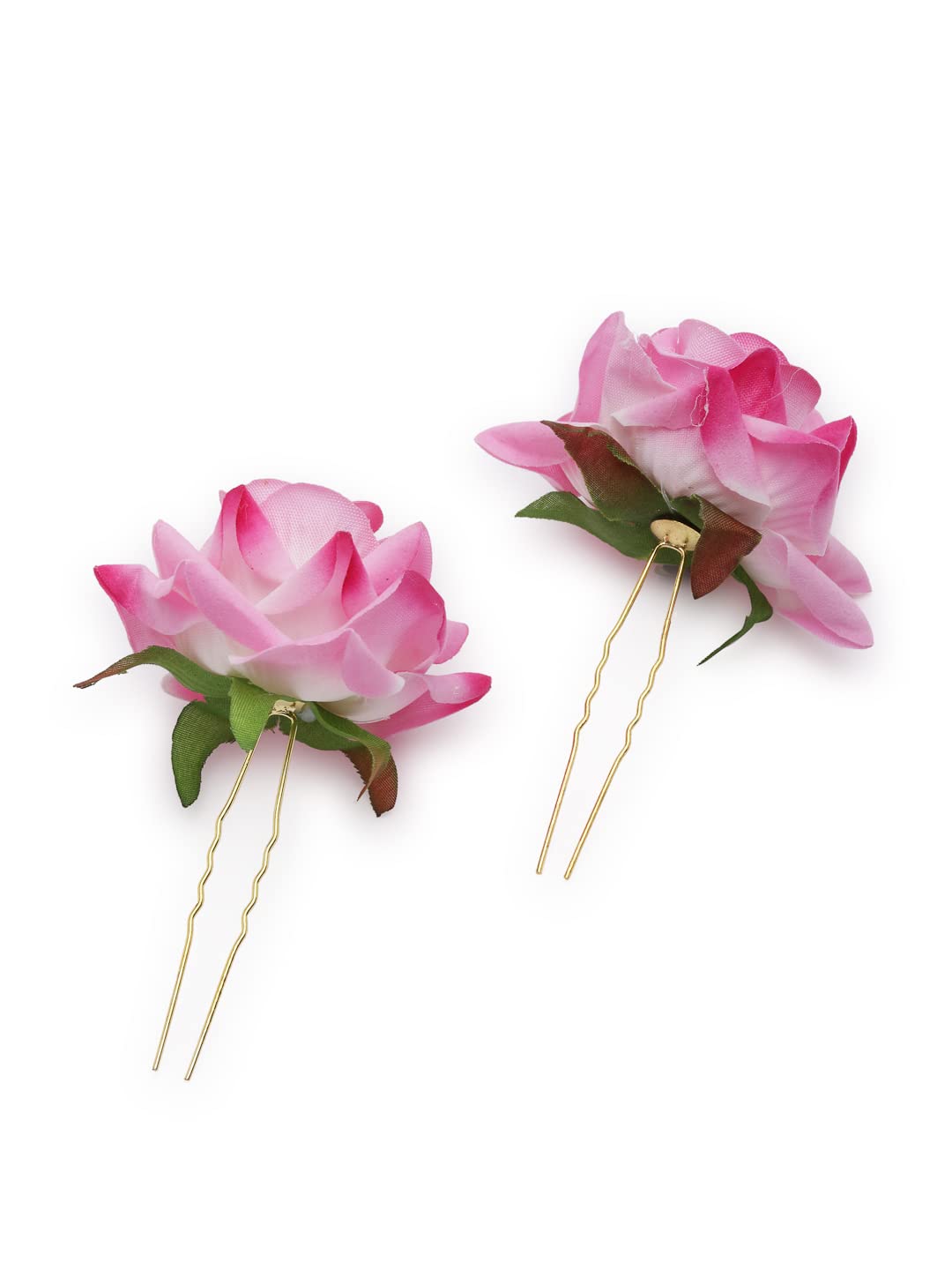 Vogue Hair Accessories Light Weight Rose Flower Bun Maker Juda Pins For Women & Girls (Light Pink-2)