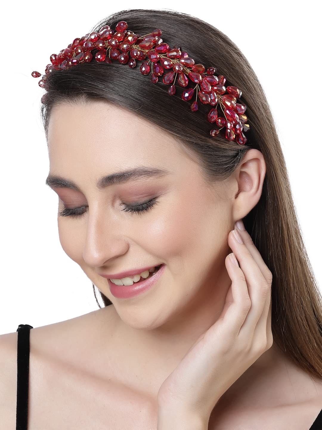 Vogue Hair Accessories Metal Maroon Handmade Crystal Beads Fancy Party Bridal Hairband Hair Accessories For Women And Girls (Maroon_Full_Beads)