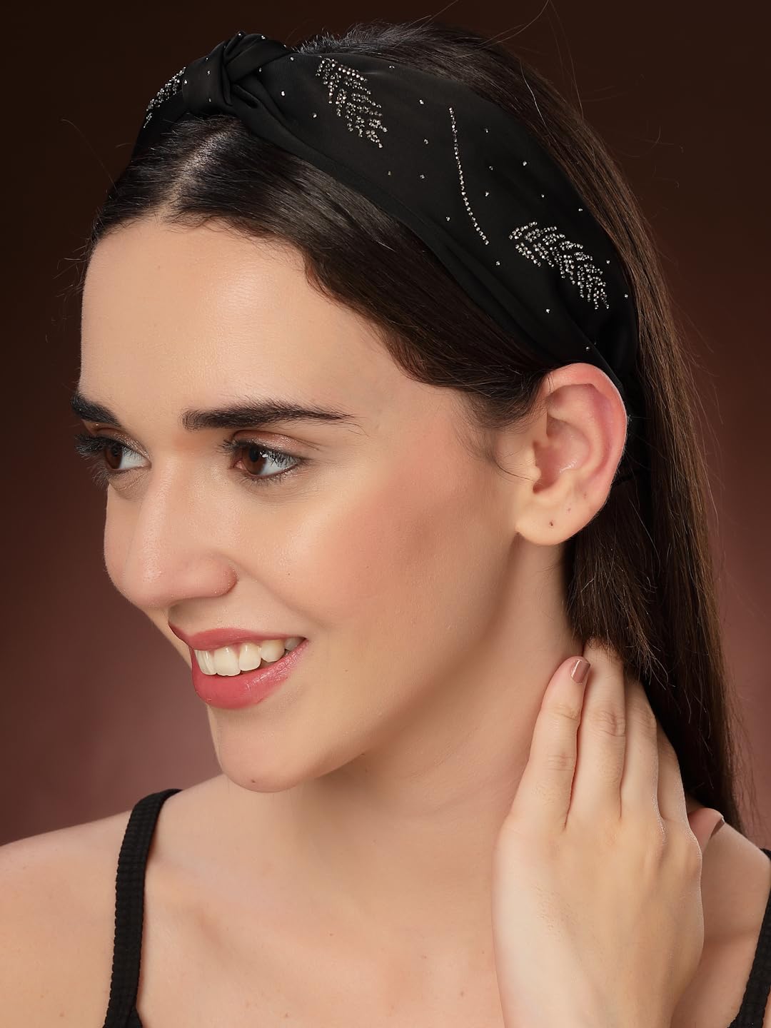Vogue Hair Accessories Plastic Embellished Hairband For Girls And Women Set of 1 (Black)