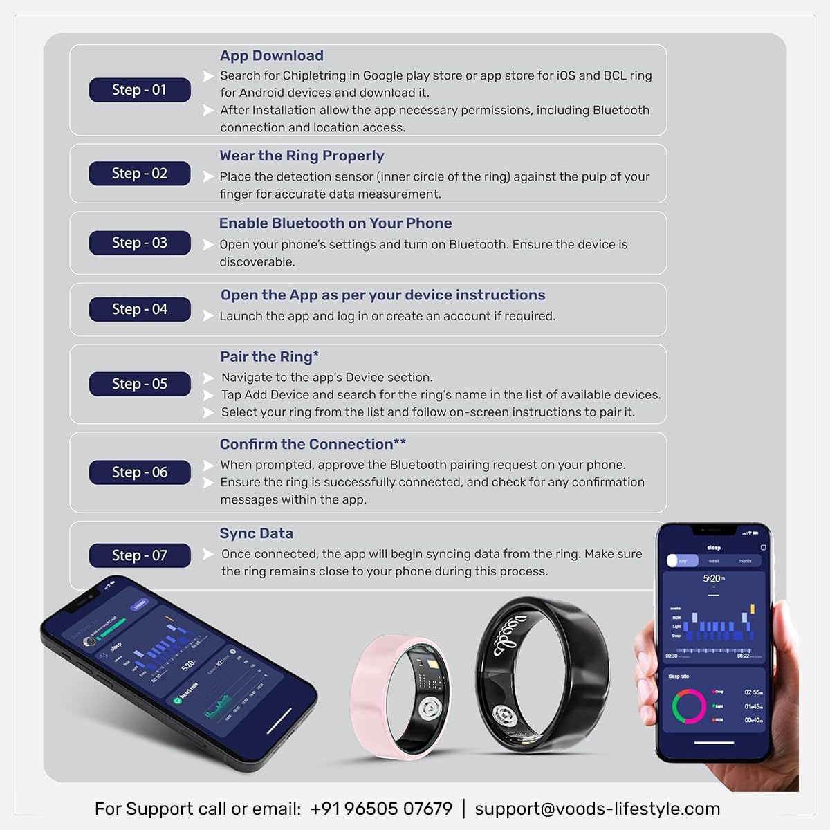 ✅ 1-Year Warranty Included – Backed by a 1-year warranty, your Voods Smart Ring is protected against manufacturing defects for peace of mind.
