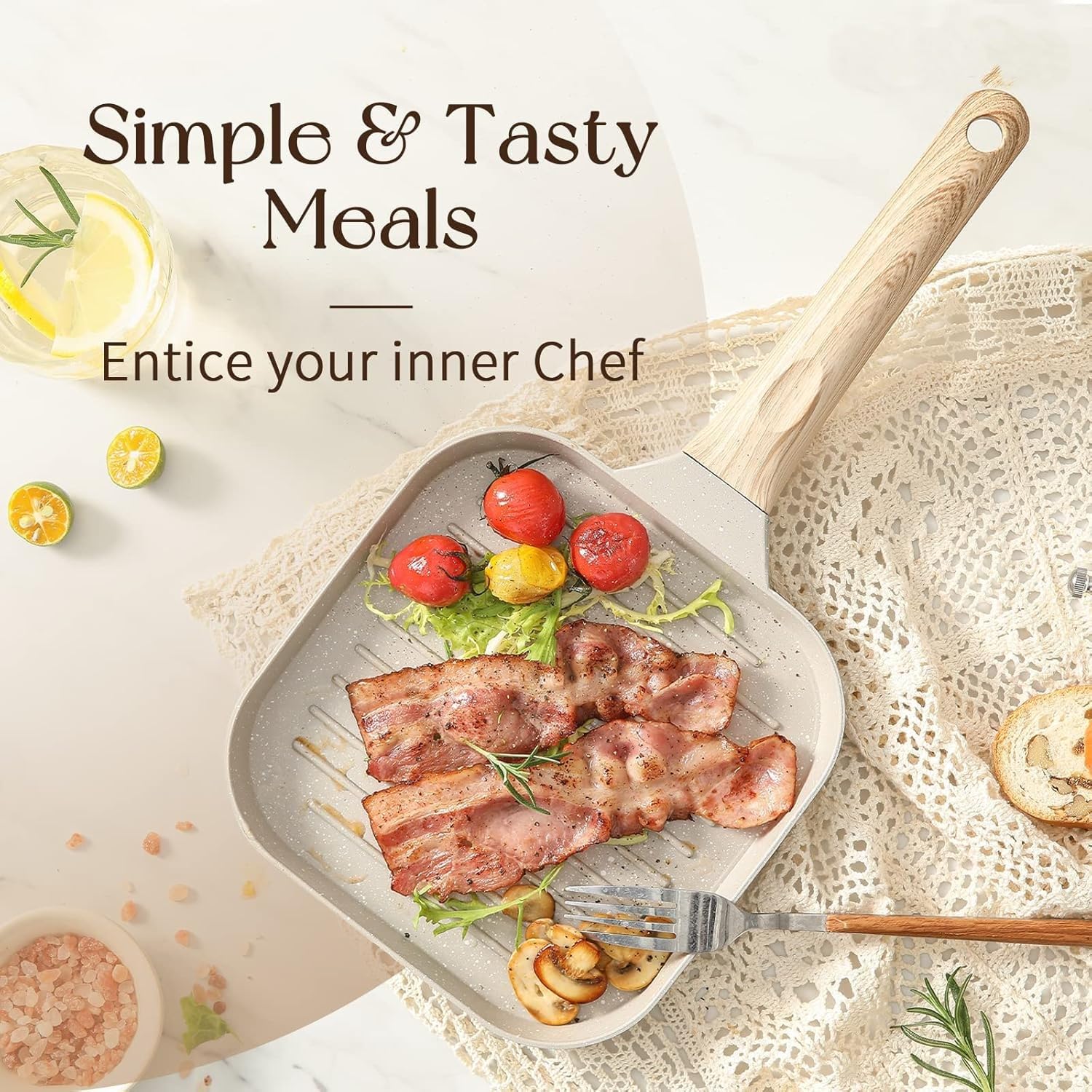 ● The multifunctional grill pan can handle sear, sauté, bake, broil, braise or fry.