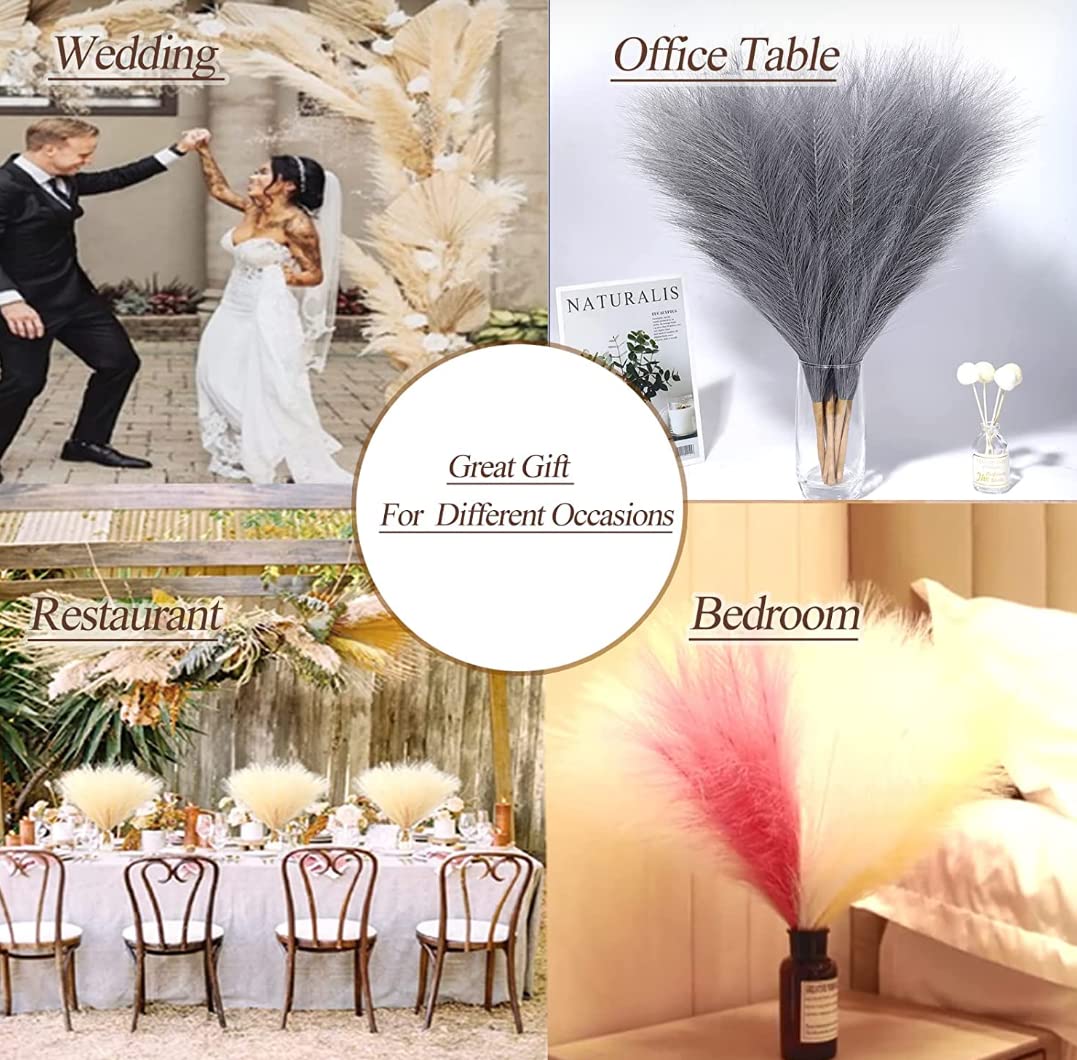 WIDELY USED :The artificial pampas grass looks like a dry flower and fluffy feather plant. Perfect for Bohemian style wedding decoration, and modern Bohemian style family decoration (ideal for living rooms, bedrooms, kitchens, hotels, offices and cafe/restaurants.)They also make great gifts for Mother’s Day, Valentine’s Day and Christmas etc.