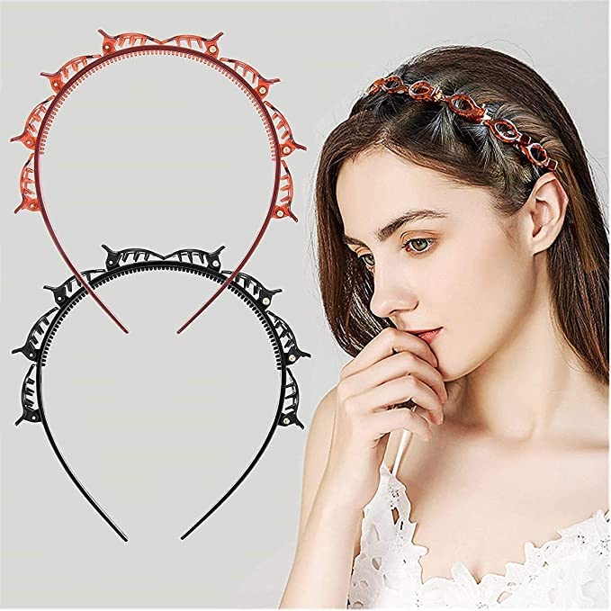 🤕 Tooth Design:-Package includes 1 pieces twist plait headbands in black and brown, and there are 8 pieces 3-teeth alligator clips on the headband, the double layer hair tools can securely hold thick or thin hair and braid hair bangs with non-slip and firm grip, and won’t hurt your hair.