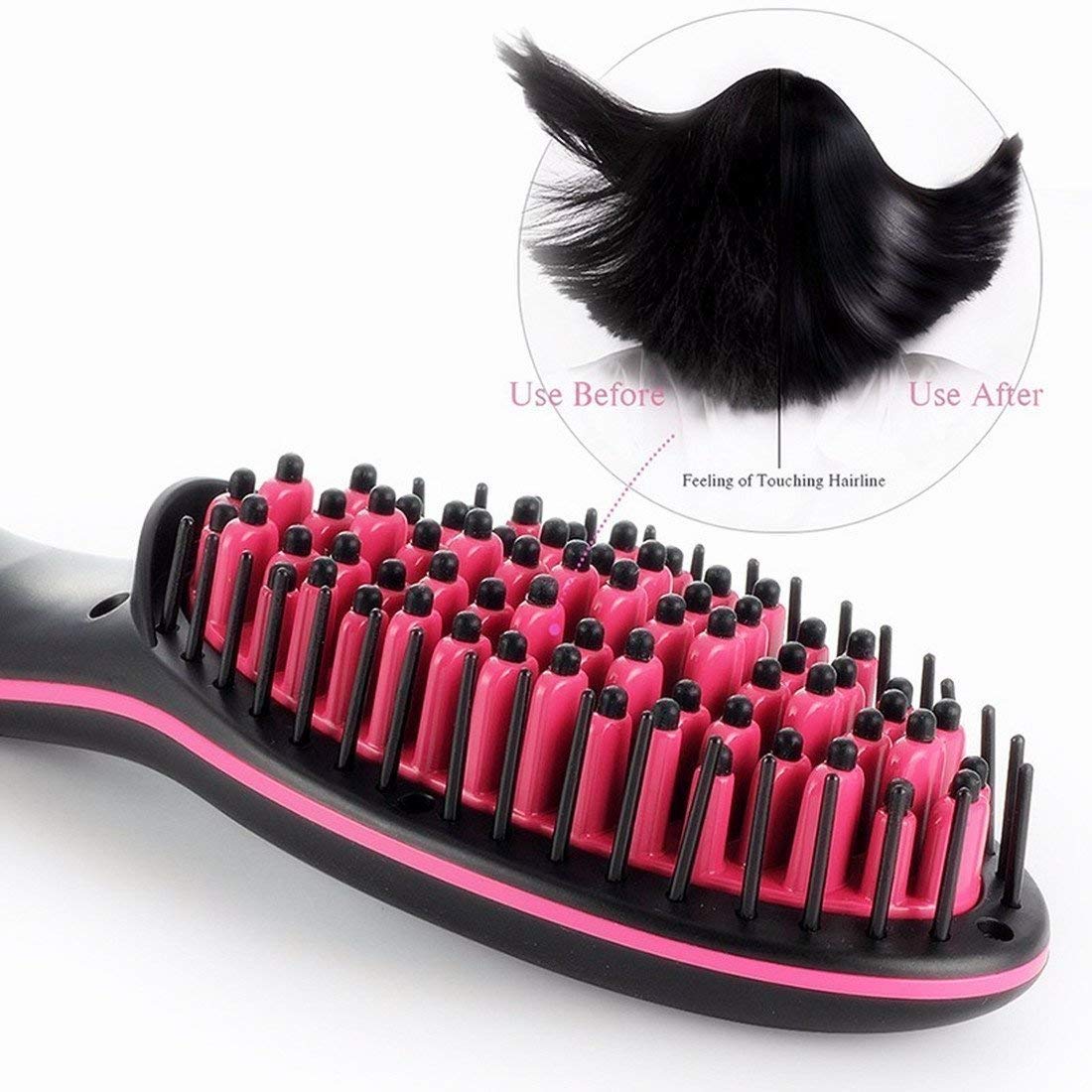 Straight is the ceramic straightening brush that gives you perfectly straight, salon quality results in minutes.As Seen on TV, this 2-in-1 hair straightened looks like a regular hairbrush, But it combines the power of a flat iron with the gentle curves of a styling brush.To straighten hair, it’s now as easy as brushing your hair! Fast Straight Ceramic Brush quickly heats up to 450 degrees.But unlike harsh flat irons that reach the same hot temperature, it won’t damage your locks.The secret is in the ceramic wrapped bristles that lift hair at the roots.Fast brush hair, and this straightener delivers gentle, even heat around each strand.No more flattening or frying your tresses.Tame the frizz and enjoy perfect volume, detangling and brilliant shine every day! Perfect for straightening curly or frizzy hair.No matter how unruly your curls, the ceramic coating gives you silky straight hair that’s easy to style.Perfect after you use shampoo and conditioner.Effortlessly comb through from roots to ends-hair styling has never been easier.Perfect for travel.60- Minute auto safety shutoff.