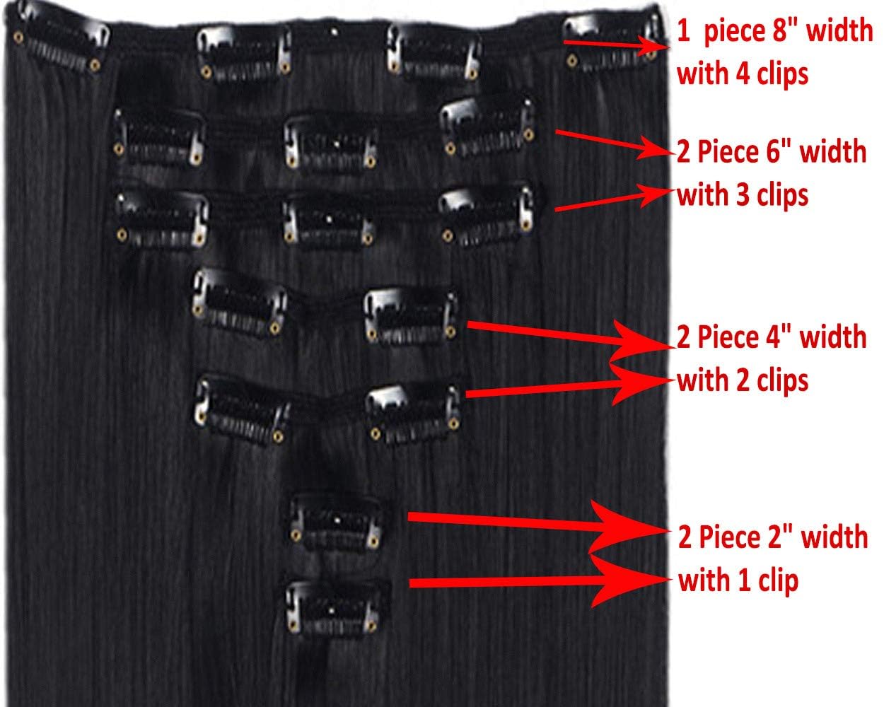 COMPLETE SET: 7-piece clip-in hair extension set with 16 sturdy clips for secure attachment and full head coverage