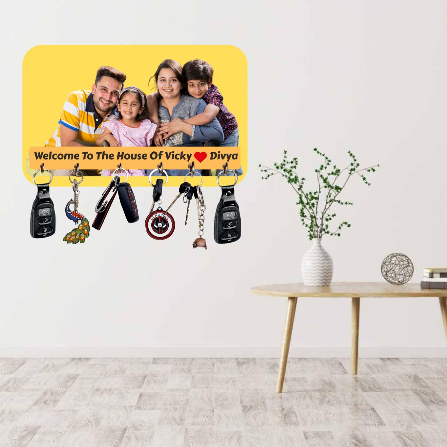 Webelkart Premium Customised Wooden Key Holder Wall Decoration Item for Home Decor Personalised Key Hanger I Key Stand I Gift Item (Size 12 x 7 inch) I 6 Hooks