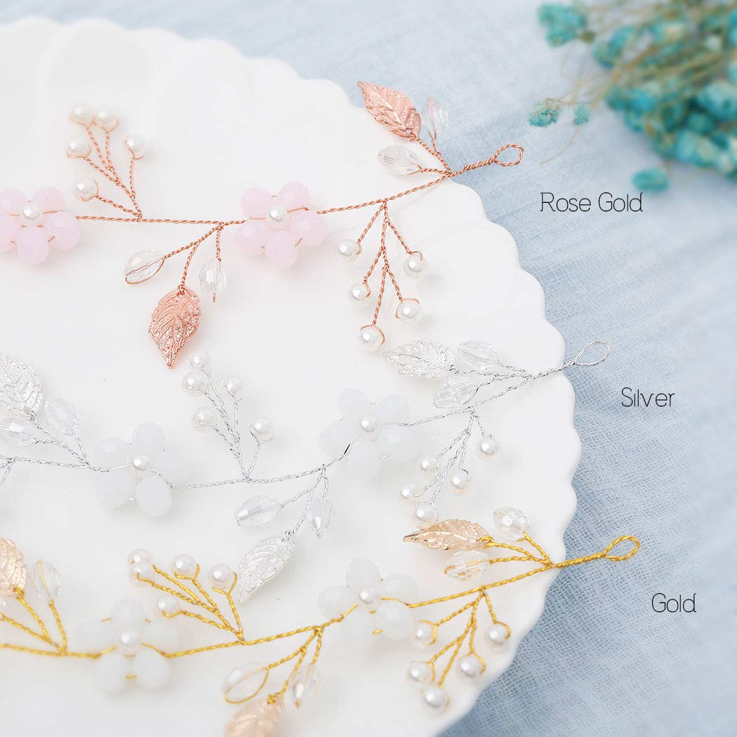 Wedding Headpiece Rose Gold Bride Flower Hair Vine Pearl Bridal Crystal Headband for Women (Rose Gold)