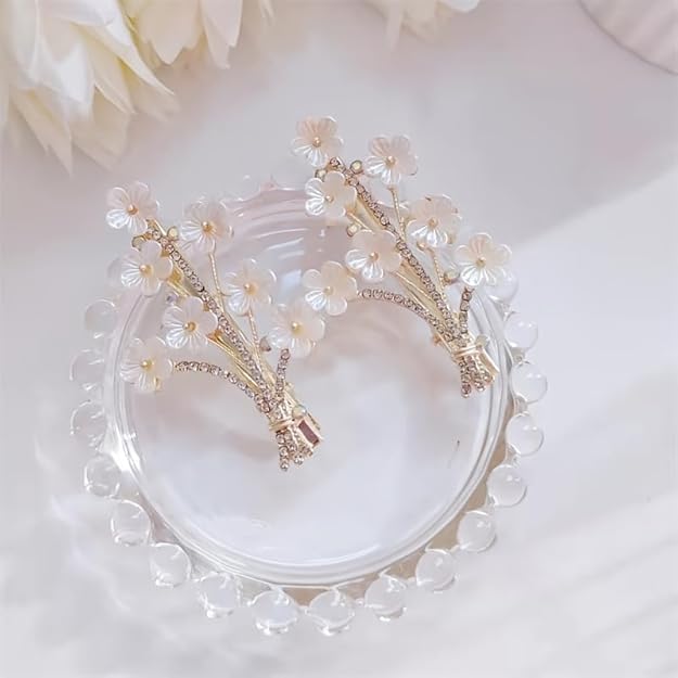 PREMIUM DESIGN: Beautiful white flower metal hair clip with golden accents, perfect for adding elegance to any hairstyle