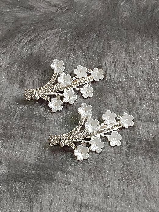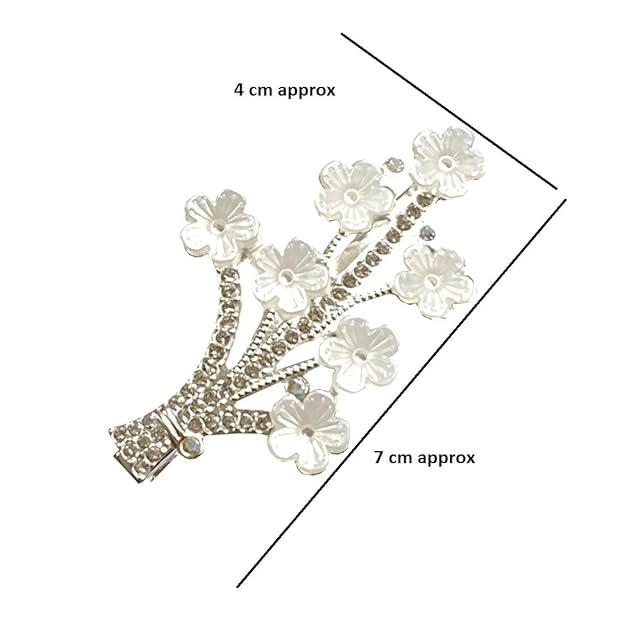 Elevate your hair styling game with FLAIR FASCINATORS’ exquisite white flower metal hair clips. This set of 12 versatile hair accessories features a stunning golden finish that adds a touch of glamour to any hairstyle. Perfect for girls and suitable for all hair types, these clips combine beauty with functionality. The lightweight design, weighing just 200 grams for the entire set, ensures comfortable wear throughout the day. These metal hair clips are ideal for both everyday wear and special occasions, helping you create various hairstyles with ease. The durable metal construction provides reliable hold while the elegant white flower design adds a charming feminine touch. Whether you’re heading to school, attending a party, or simply want to add a decorative element to your hair, these versatile clips are a must-have accessory in your collection. Made in India, these hair clips blend traditional charm with contemporary style.