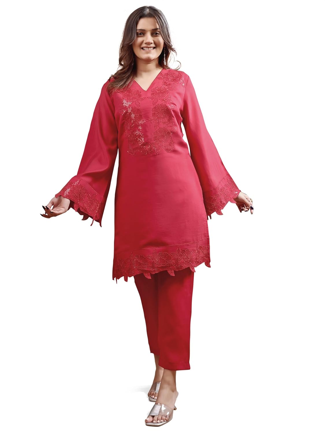 Womanista Women’s Grey Colour Silk Blend Tonal Seuiqnns Embroidey Work Tunic With Trouser Set (Co-ords_9063_S)