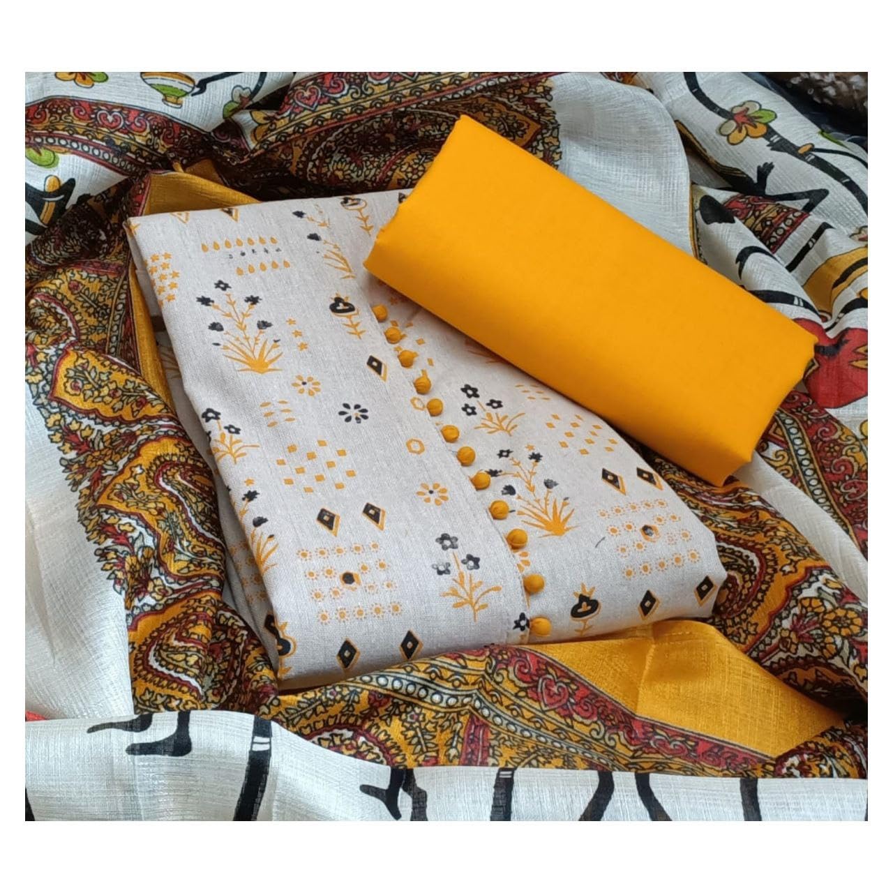 Women Designer Printed Pure Cotton Unstitched Salwar Suit Material Dress Material with Printed Dupatta (Free Size)
