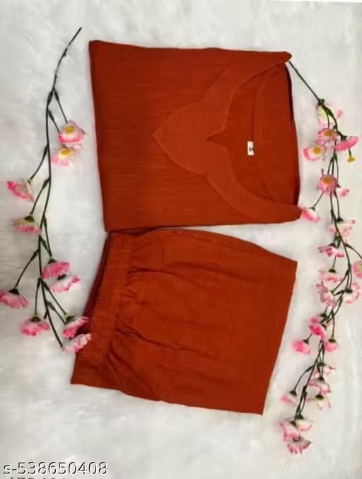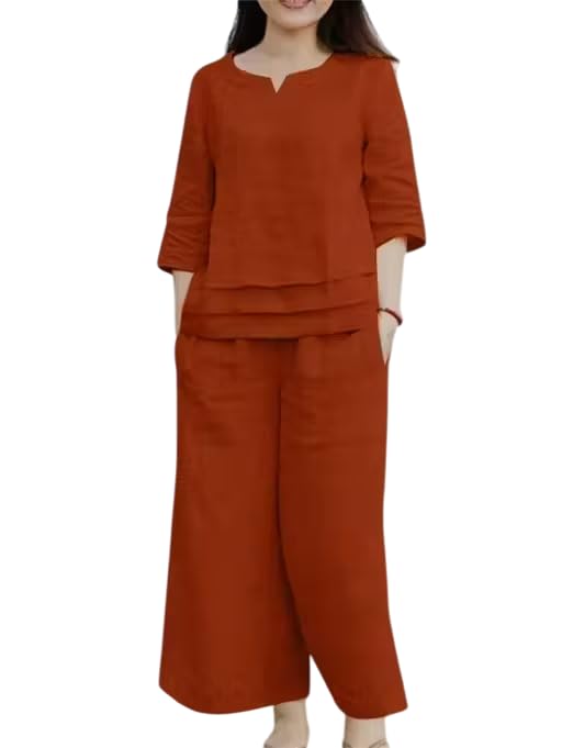 Women’s Cotton Linen Co-ord Set, 3/4 Sleeve Top with Wide-Leg Trousers, red