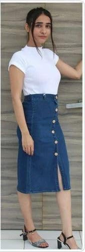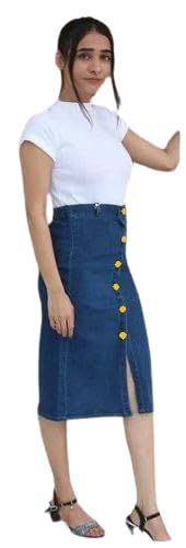 Designed with Navy Blue Straight Long Denim Skirt. Nice well-made Lightweight & Breathable. Home washable with exclusive self designs and durable materials. This is the trendiest & fit denim midi-calf Skirt of the all seasons. This Denim skirt works for all body types. Perfect wear which provide you comfort, feels light & breezy, Breathable, free moving material which adjusts according to your waist and create an astoundingly easy going experience. Made with the sense of the latest fashion trends.