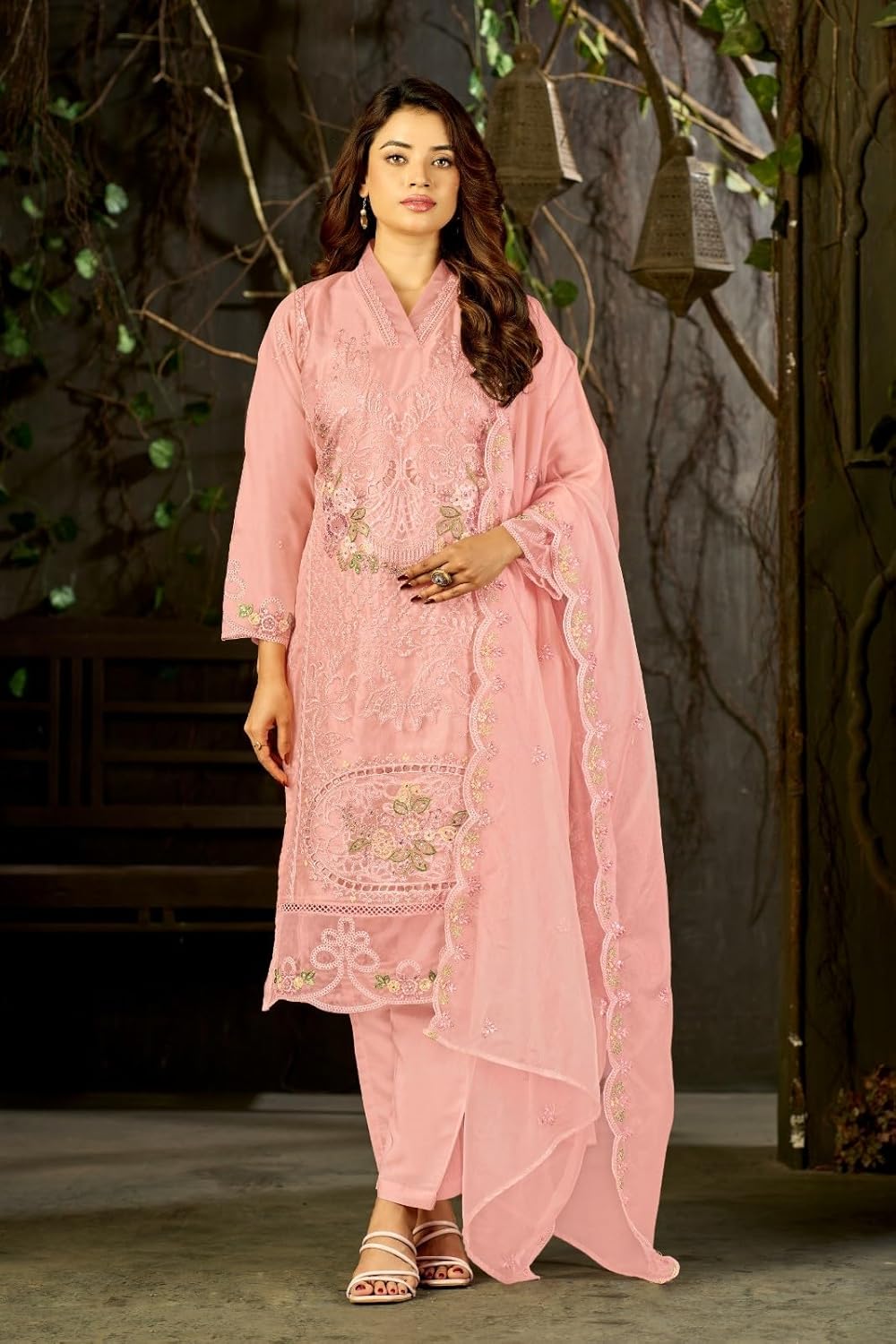 women’s organza silk with heavy embroidery and thread work readymade designer kurta suit with salwar and dupatta
