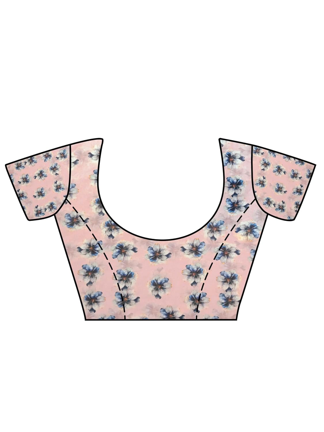 Women’s Pink Floral Print Polyester Saree With Unstitched Blouse Piece | Printed Sarees For Women | Wedding/Festive Sarees |Traditional Ethnic Wear | Everyday Sari