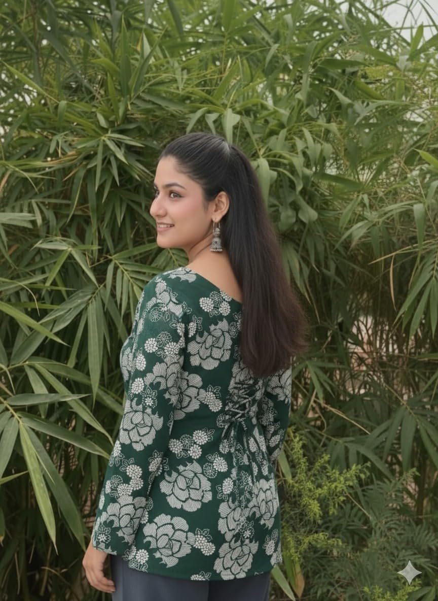 women’s Rayon Printed Short Kurti Top | Square Neck | Full Stylish Sleeves