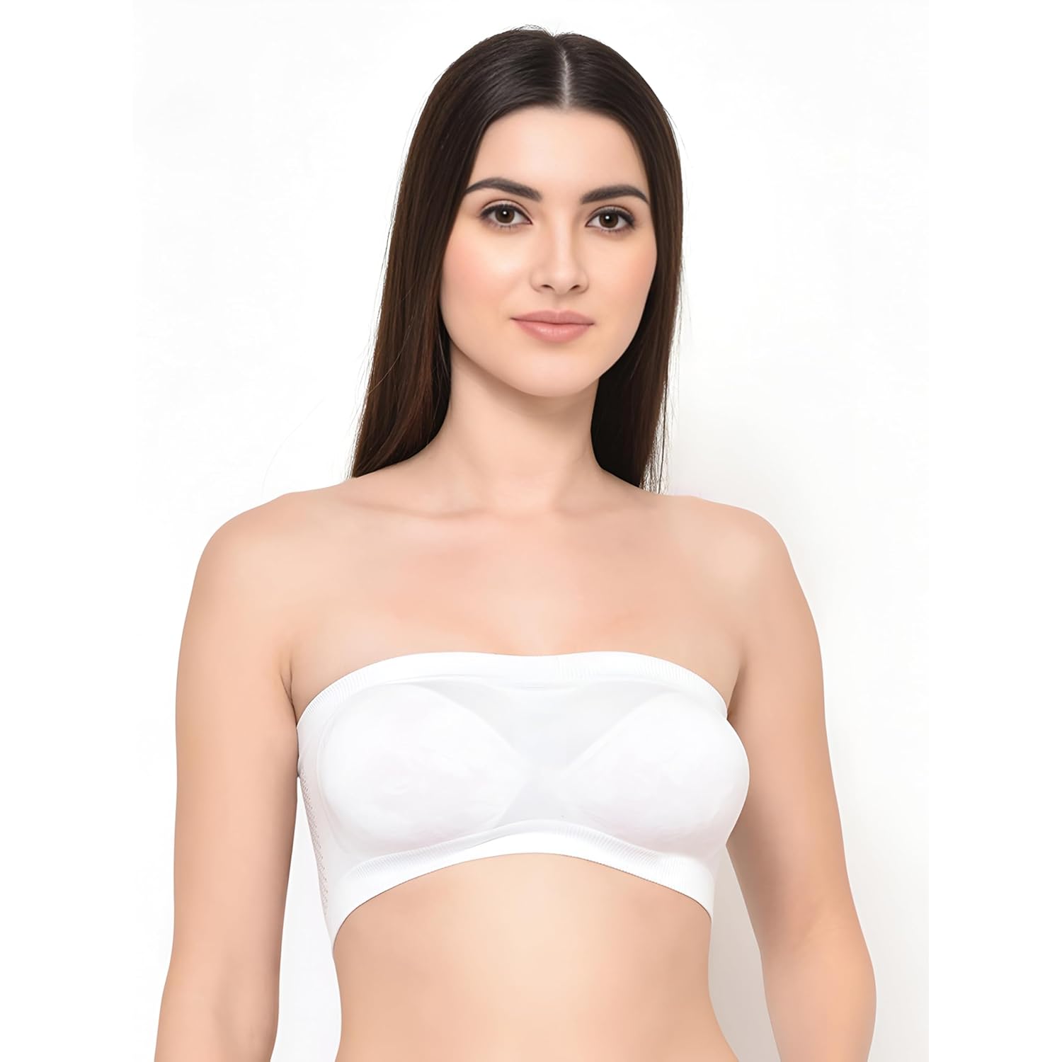 Women’s Seamless Strapless Bandeau Bra, Non-Padded Tube Top, Wireless Cotton Polyester, Black, Pack of 3