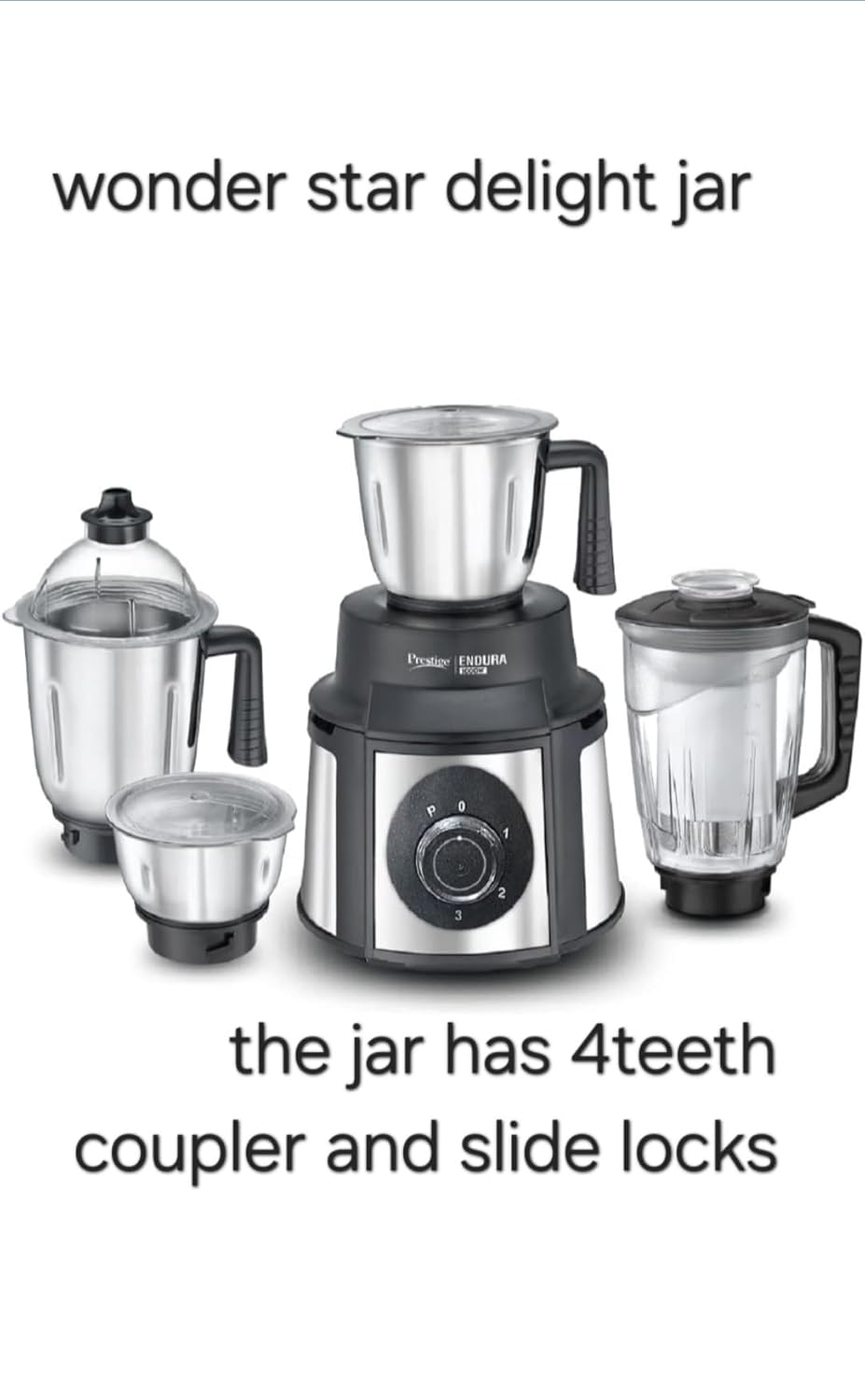 Wonderstar Stainless Steel Mixer Grinder Jar 1000ML Capacity, Compatible with Prestige Delight and Delight Plus, endura 1000w, endura pro Models||4teeth coupler||slide locks