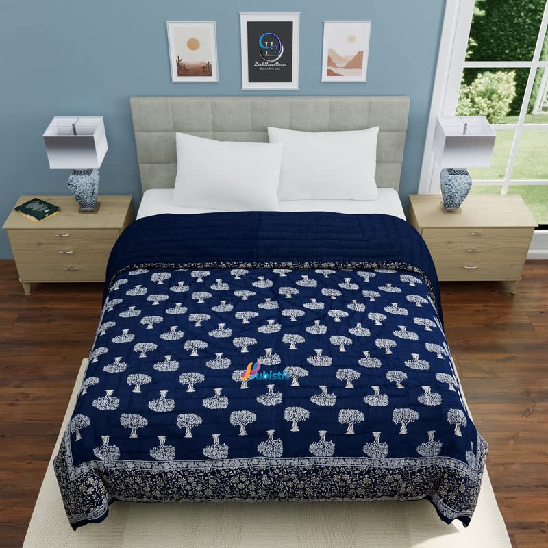Woodsy presents the world famous Jaipuri Quilts in traditional prints of Rajasthan. Jaipuri quilts are characterized by their incredible feather-weight lightness, softness and warmth. Brightly colored Jaipuri quilts can enhance the décor of your bedroom while providing unmatched comfort to you and your family. This cotton quilt has a beautiful print pattern which is further enhanced with intricate hand blocks. Material: 100% cotton fabric and plain cotton on the other hand, soft, matched pure cotton and lightweight Jaipuri Rajai/Quilt. 100% organic cotton shell for a rich luxurious feel, the middle lining is 100% organic soft cotton making this cotton quilt soft and warm, yet lightweight. 100% PURE ORGANIC COTTON- We use a very straight line method to clean waste from cotton by experienced hand. Vintage and Heritage Look Jaipuri Quilts – Since the inception of Jaipur we are still trying to preserve our heritage culture in Jaipuri Quilts.