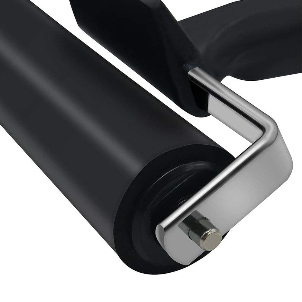 Roller handle is made of non-slip plastic, easy to grab and operate. Roller frame is made of stainless steel, rust-proof and sturdy to use a long time. The roller drum is made of rubber, smooth and solid.Size :- 5.9 x 3.9 inch, ideal for use in printmaking and other related projects, suitable size to hold and use with linoleums, soft blocks, or woodcuts.This rubber roller is easy to exert force, two finger prints will help to adjust the power and direction for a more pleasant user experience.Our rubber brake rollers can be widely used in craft projects, printmaking, painting, inking blocks, stamping tools, carved surfaces, scrapbooks, etc
