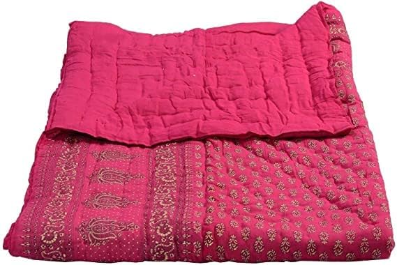 World Famous Jaipuri Light Weight Pure Cotton Traditional Rajasthani Print Multi Colour Double Bed Quilt/Razai/Rajai (Pink, Double)