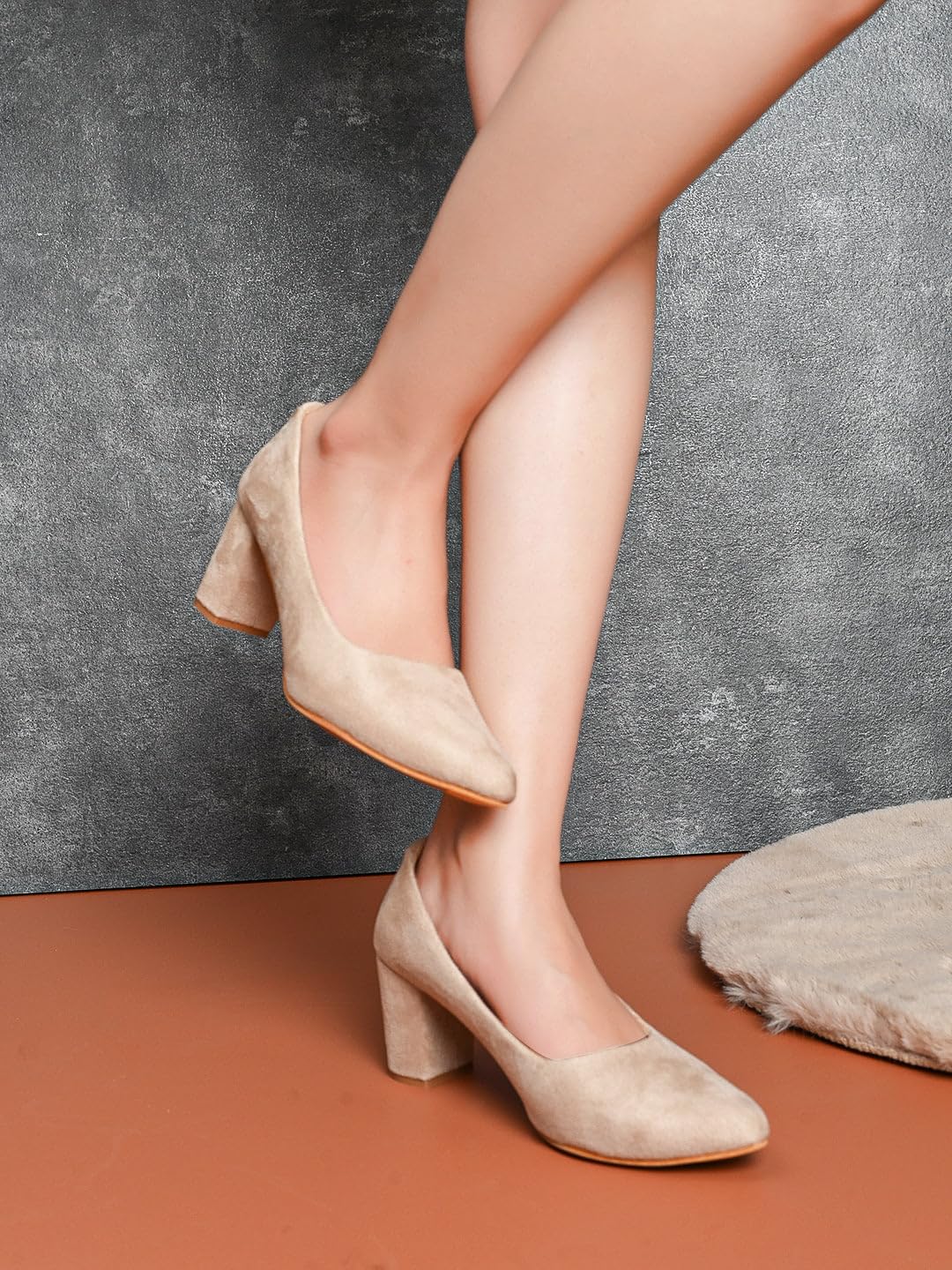 Step into elegance with these soft suede block heels. Featuring a chic finish, cushioned insole, and classic silhouette—perfect for work, outings, or special occasions.